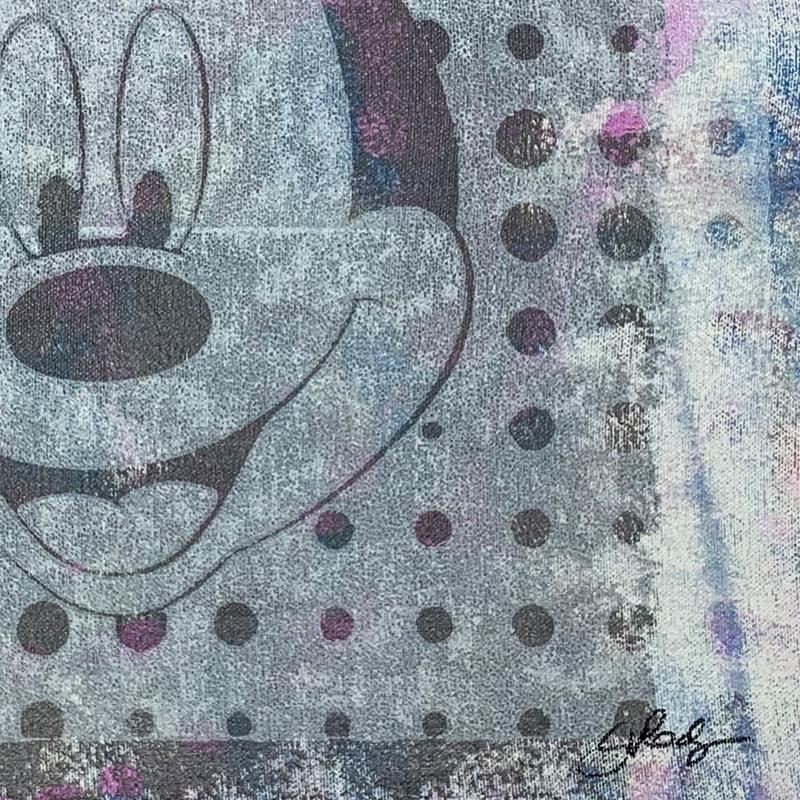 "Mickey Mouse" is an original hand pulled silkscreen and acrylic painting on canvas by Gail Rodgers. Hand signed by the artist, the piece comes with a letter of authenticity. This piece is meant to be gallery wrapped and measure approximately 23" x 23" and image dimensions (after stretching) 16" x 16" (image).