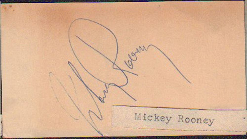 Two inch by four inch rare Ontra Cafeteria parking stub signed by Mickey Rooney. The Ontra Cafeteria was one of the hot spots of Beverly Hills in the 1950s. All items come with a certificate of authenticity good for the life of the piece.