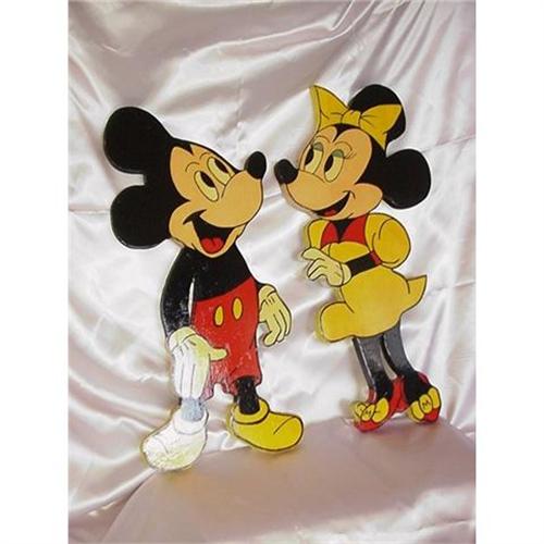 Wood Mickey and Mini Mouse. 23" tall x 10 1/2" wide. Cutouts hand painted on pine board.