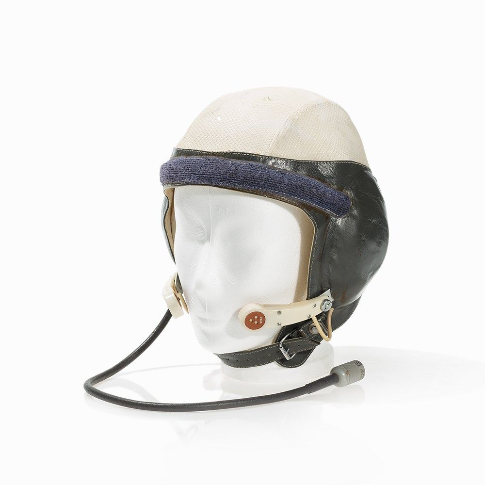 An unparalleled piece from the Soviet space history with stamped inscription, date and numbering; such a radio helmet was for example used in the Soviet space missions: Soyuz 14 and Salyut 3