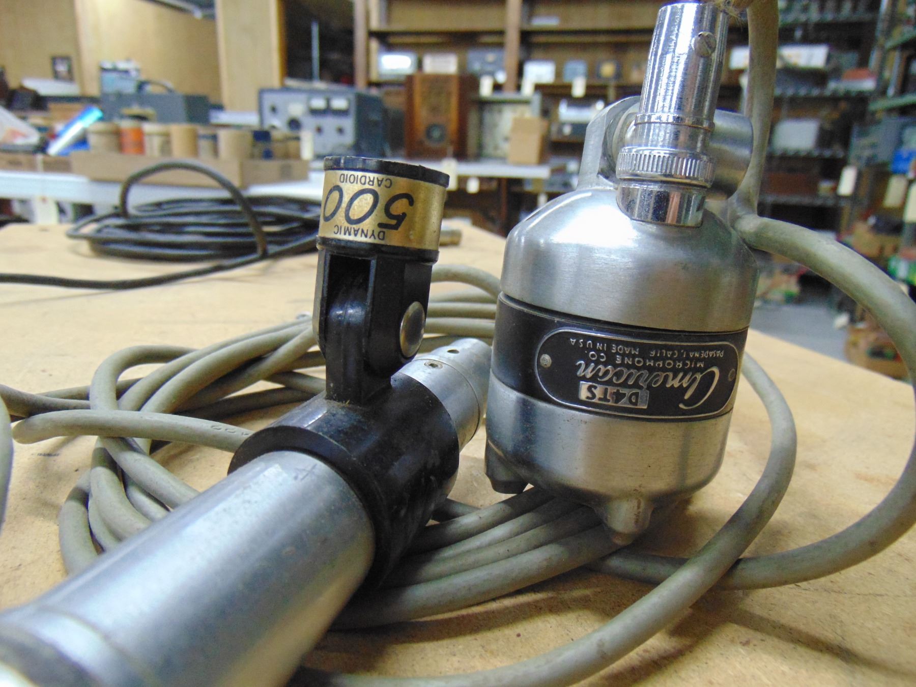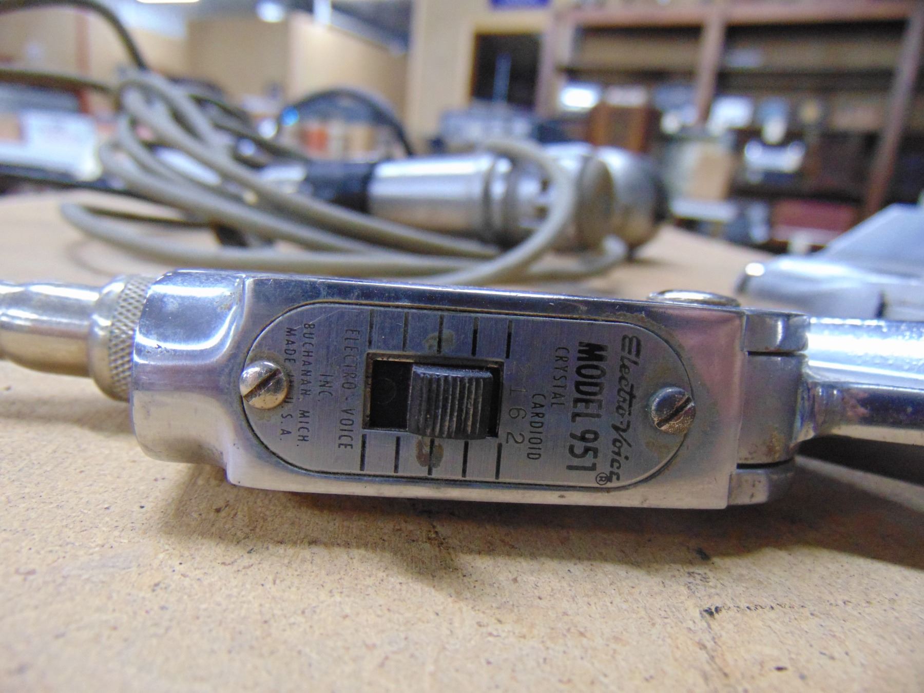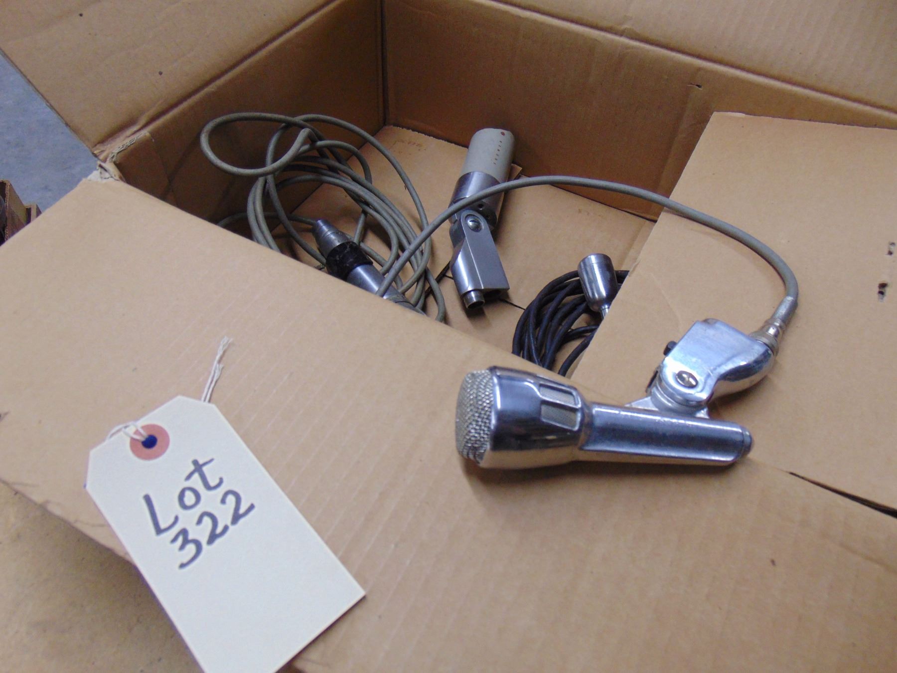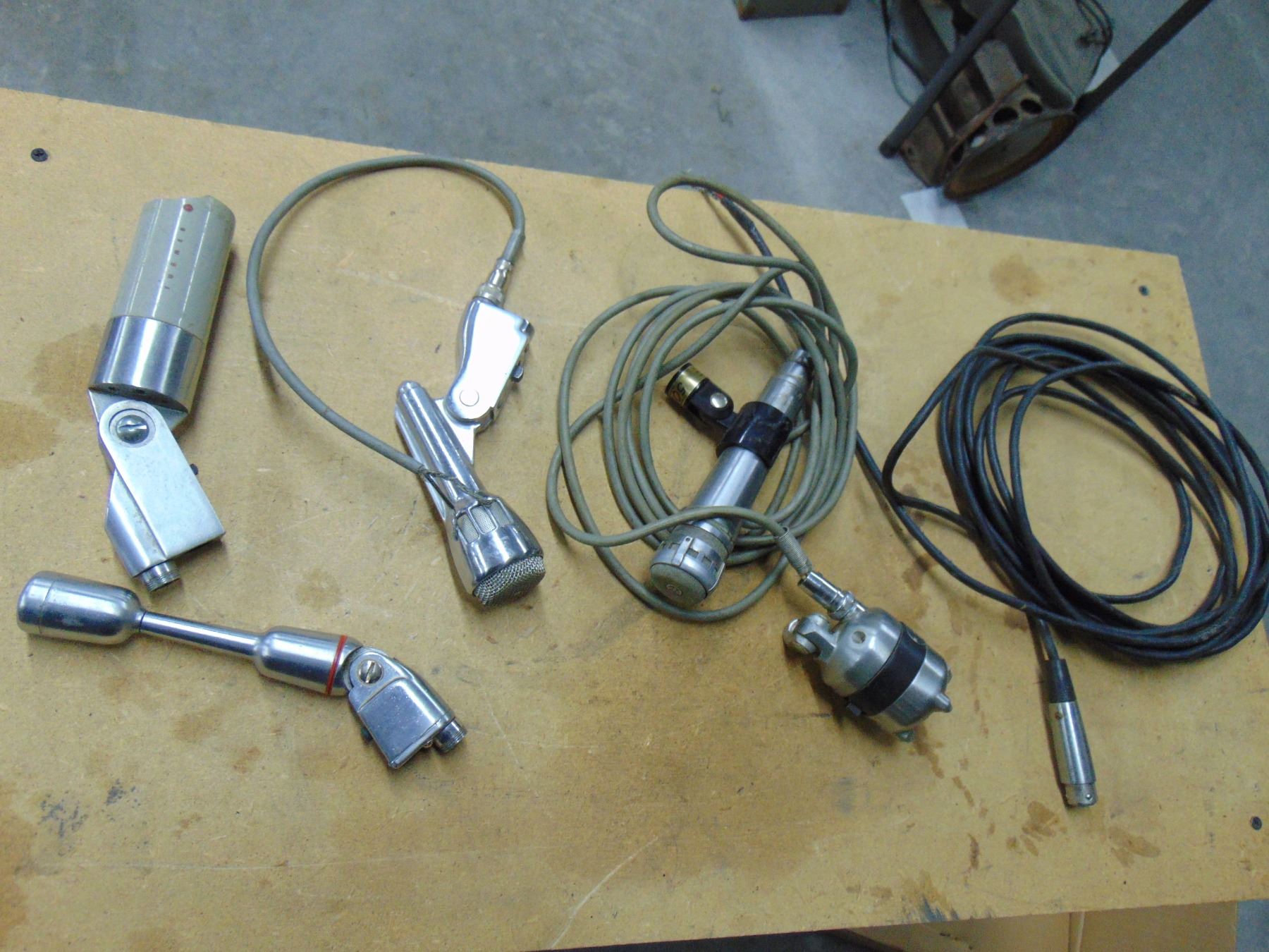 Flat of 5 microphones; includes American D4TS salt shaker, Electro Voice 951, 3 Turner microphones