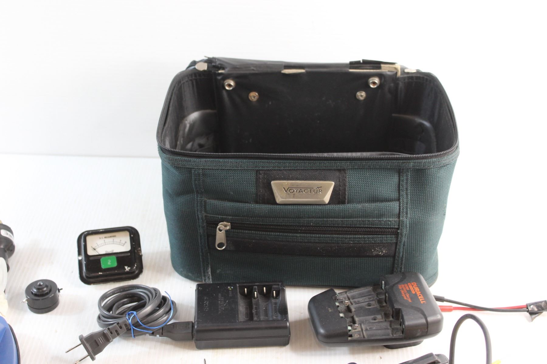 Microscope, Circuit Tester, Battery Chargers, Bag and Assorted Electronics