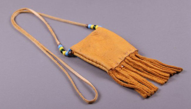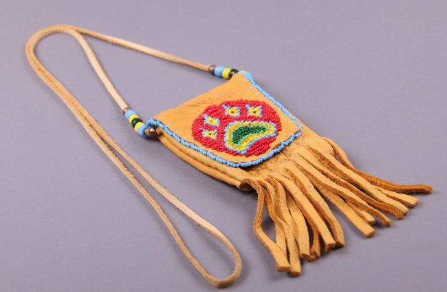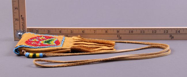 Mid 1900's Native American hand beaded purse with leather. Certificate of Authenticity, Private Collection of Chief Joe Dan Osceola of the Seminole Tribe. (Size: See last photo for measurement.) Photos are part of the description representing the condition report. Pangaea Auctions urges Bidder's to view all attached photos.