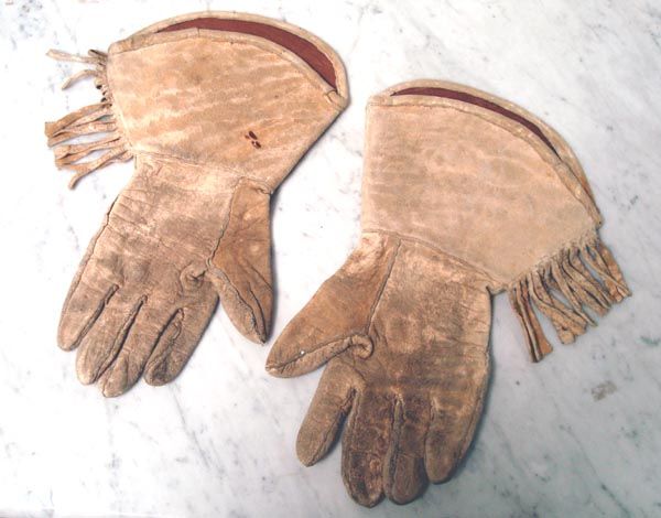 Native American Mid-1900's Plateau Beaded Gauntlets, beautiful floral beaded designs, fringed accents, measures approx. 13.25''L x 8.5''W.