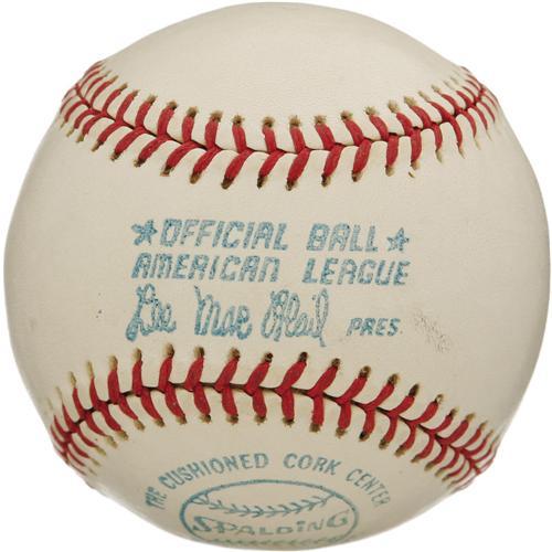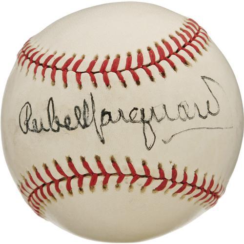 <B>Mid-1970's Rube Marquard Single Signed Baseball.</B></I> Along with Christy Mathewson, this Hall of Fame southpaw anchored one of the most fearsome pitching rotations of the Dead Ball Era for perennial National League flag bearers the New York Giants. Here we find a very tough single from this early legend, made all the more scarce for the appearance of the 10/10 black ink autograph on the sweet spot of this OAL (MacPhail) sphere. The scant few Marquard singles that have surfaced in recent years are all but exclusively signed on the side panel. A thin brushing of clear sealant over the autograph is barely visible, and has served its intended purpose admirably. Arguably the most appealing Marquard to reach the auction block in recent years. <I>LOA from PSA/DNA. LOA from James Spence Authentication.</B></I><BR><BR><b>Shipping:</b> Balls, Pucks, etc., Small (<a target="_blank" href="http://www.heritageauctions.com/common/shipping.php">view shipping information</a>)