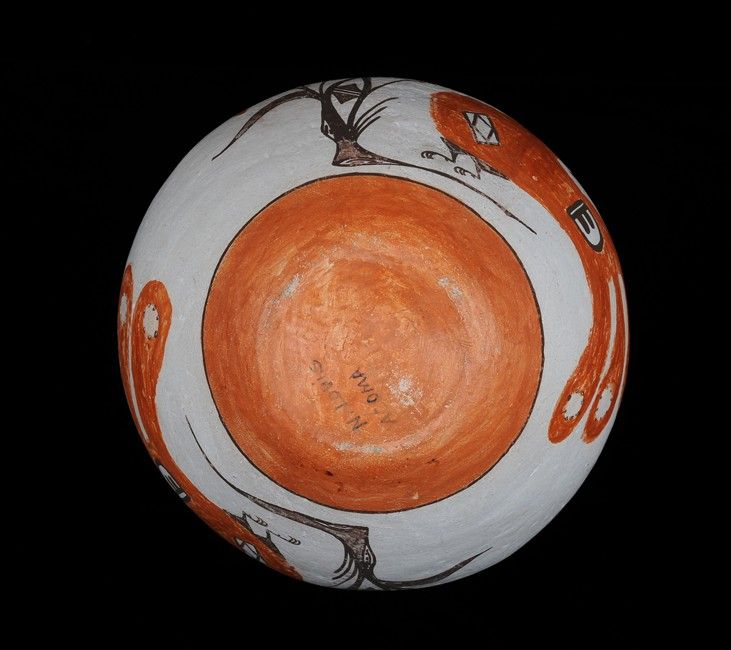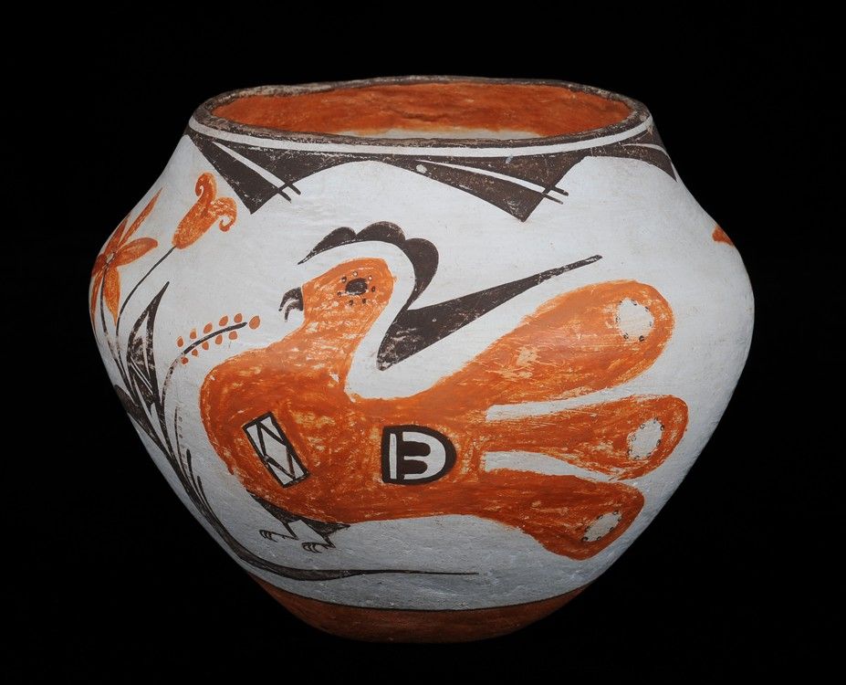 Mid 20TH C. Acoma Pottery Bowl with Bird and Floral Design 9" D. 7" H. Good Condition