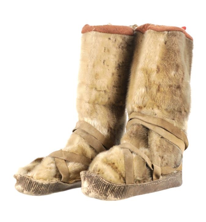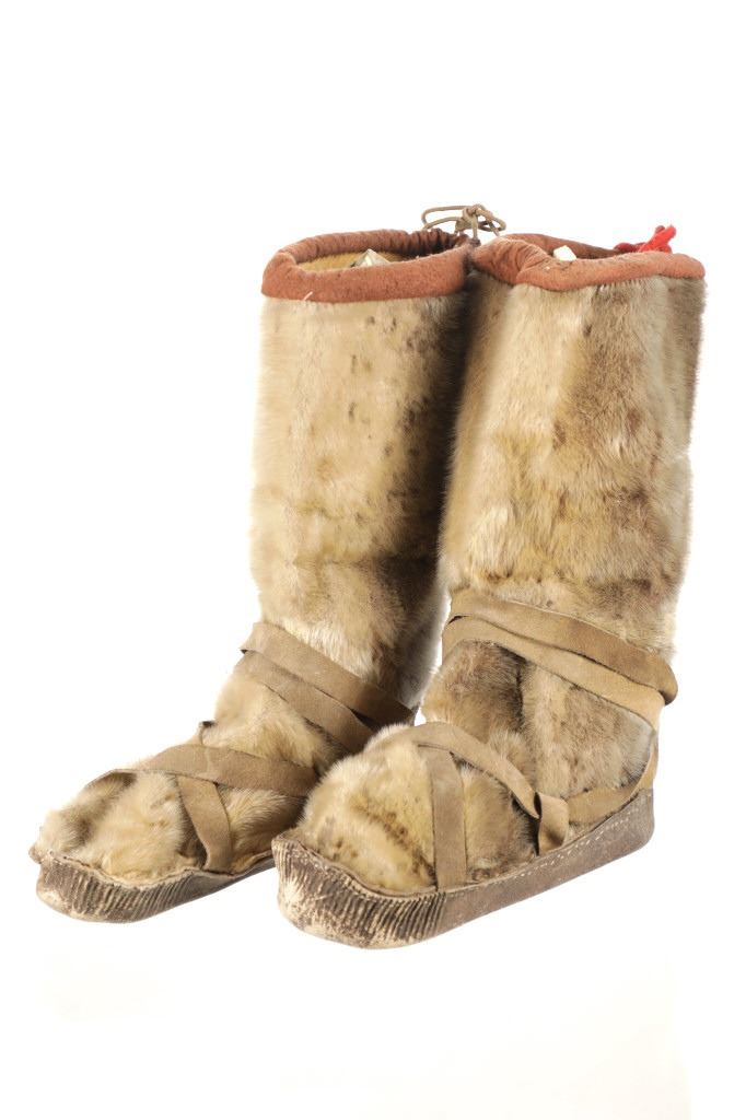 Mid-20th C. Inuit Sealskin, Hide & Caribou Mukluks