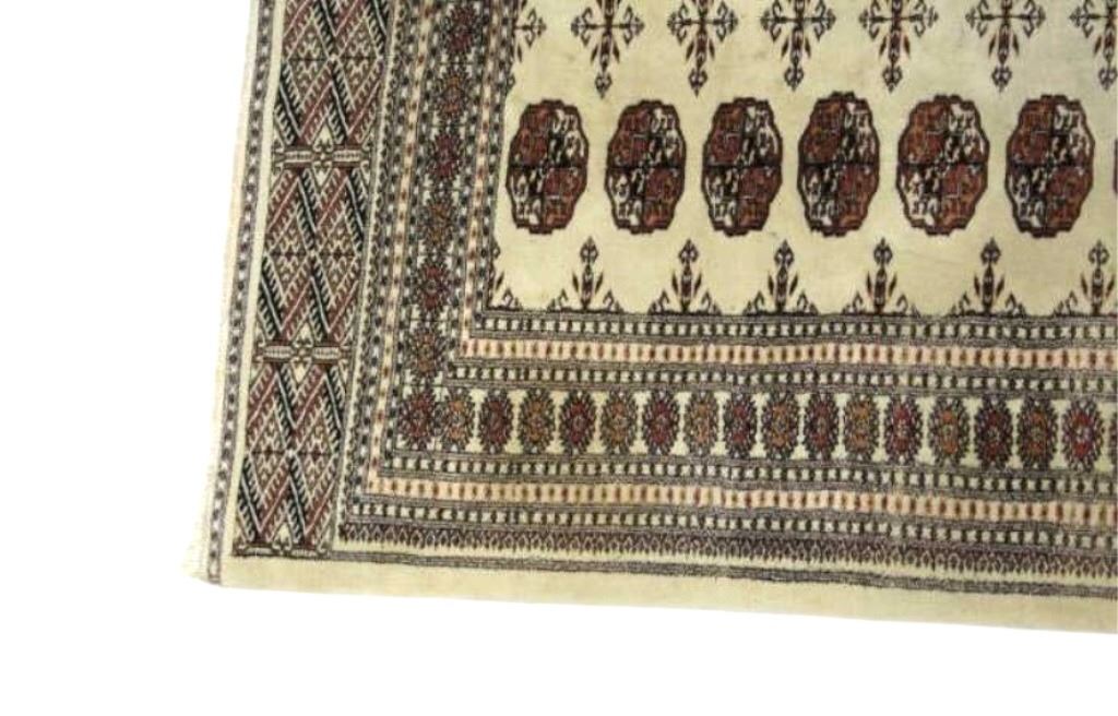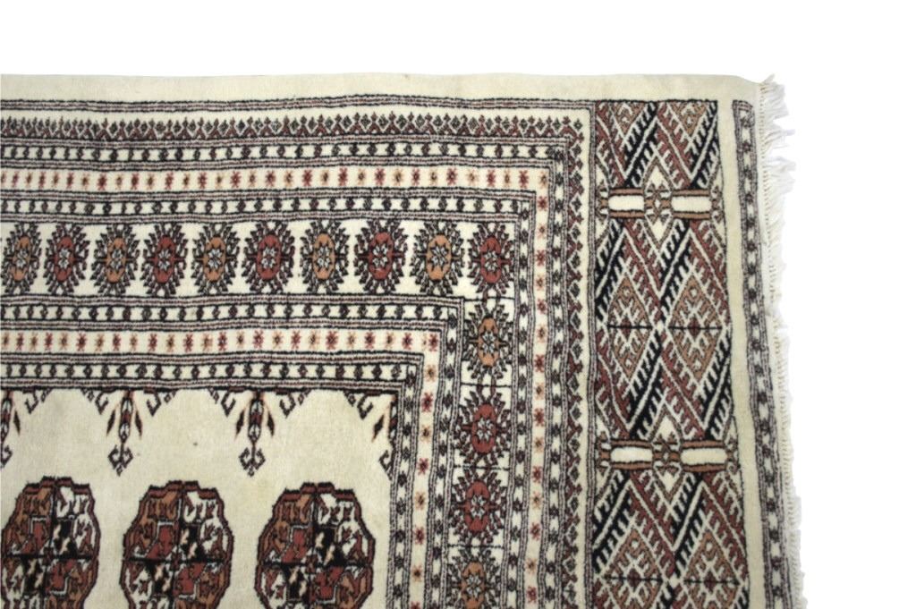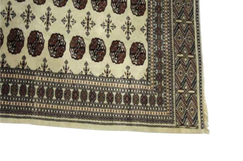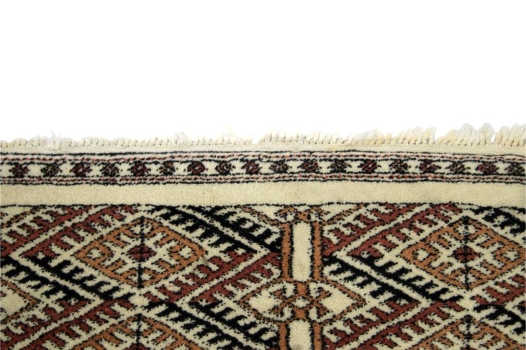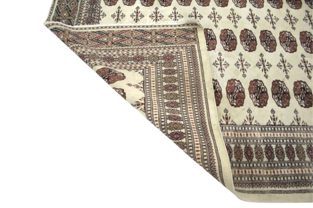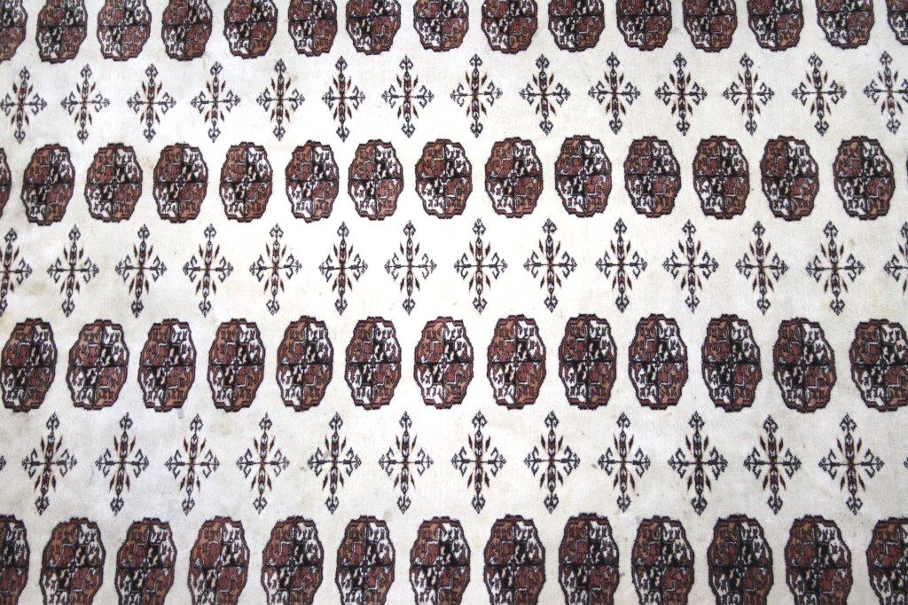 Featured in this lot is this large Tunisian Zerhivas / Zarbeeya Wool Rug, circa mid-20th century. Pile rugs known as "zerhivas" or "zarbeeyas", consist of a central motif bordered by an arabesque pattern. Most of these rugs follow traditional designs and motifs and are much longer to weave. They are found throughout Tunisia but are most common in Kairouan, Tunisia. Kairouan has been known for its silk, cotton and linen fabrics since the 8th century. Pile carpets in Kairouan are decendents of Anatolian imports in the 17th and 18th centuries, and such rugs were first made in Kairouan in the 18th century. From the 17th century, Tripolitanian Berbers migrated to Tunisia, bringing with them more complex and fine geometries. The “mergoum” technique was adapted to Kairouan carpets. The rug utilizes colours of brown, red, and black against a cream coloured background. Geometric designs are featured on the borders. A beautiful rug with fringe on each long end, nice condition and shows little wear and use. The rug measures 114" wide by 150.5" long.