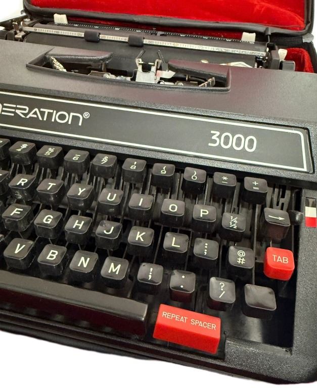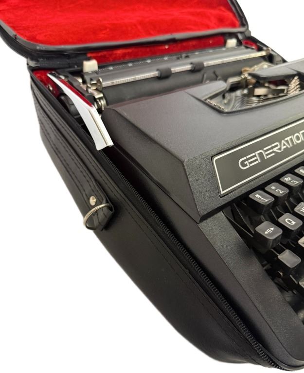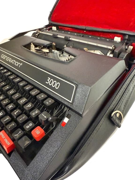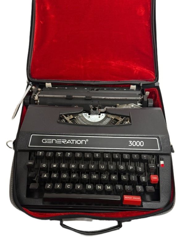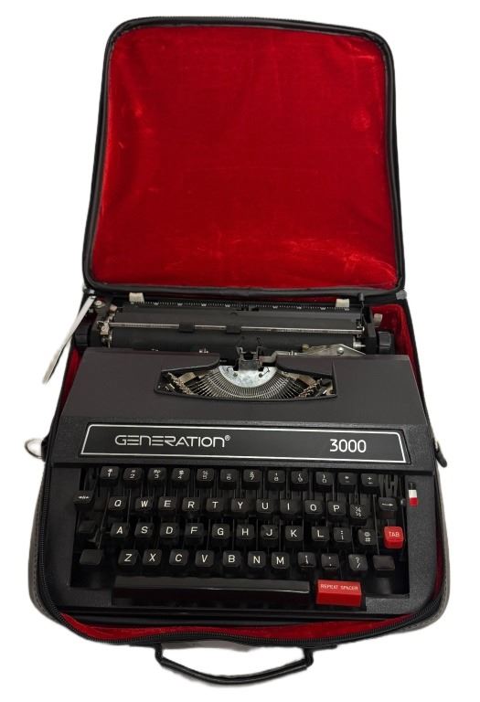 Item/Description: Generation 3000 manual portable typewriter with a zippered vinyl case. Manufactured in China during the 2000s, making them one of the last new manual typewriters widely available for purchase in the 21st century. It is a basic, lightweight machine with a plastic body designed for general writing tasks. Features include a 44-key/88-character keyboard, a three-position ribbon selector, and a variable line spacing option.