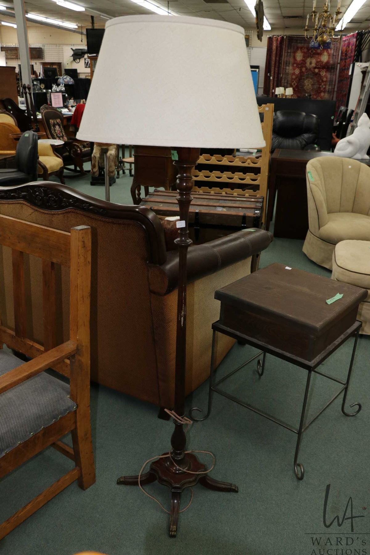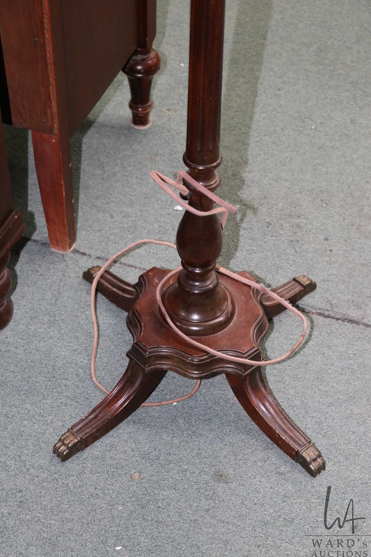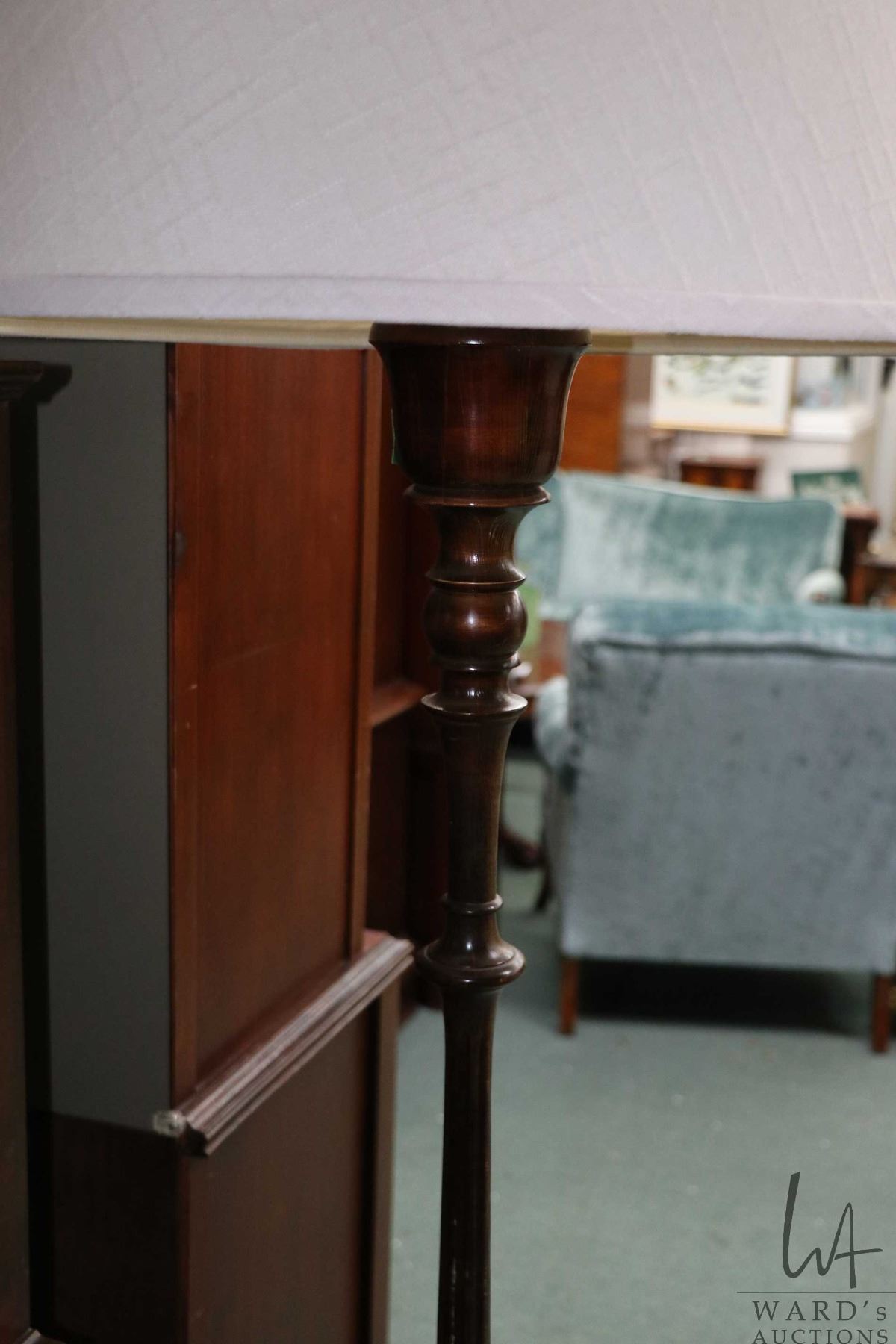 Mid 20th century Regency style wooden floor lamp with reeded pole and brass capped feet
