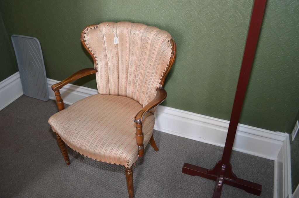Mid 20th century channel back upholstered open arm parlour chair