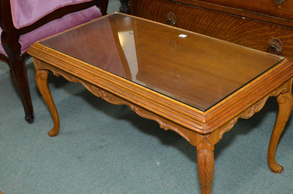 Mid 20th century coffee table with carved skirt and upper supports