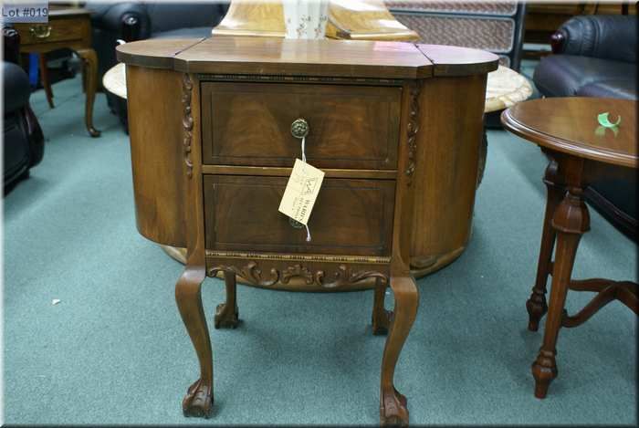Mid 20th century sewing/knitting table with storage compartments and drawers plus carved ball and claw feet
