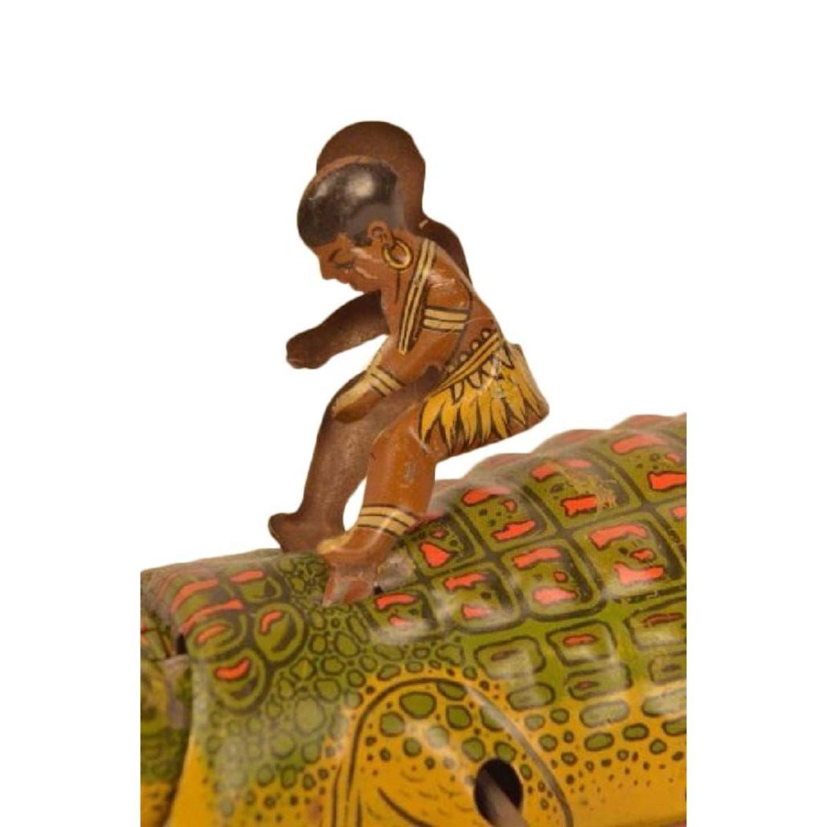 Mid 20th-Century ( 1950's ) alligator crocodile tin litho wind-up toy with rider. * wind-up mechanism does not work properly.