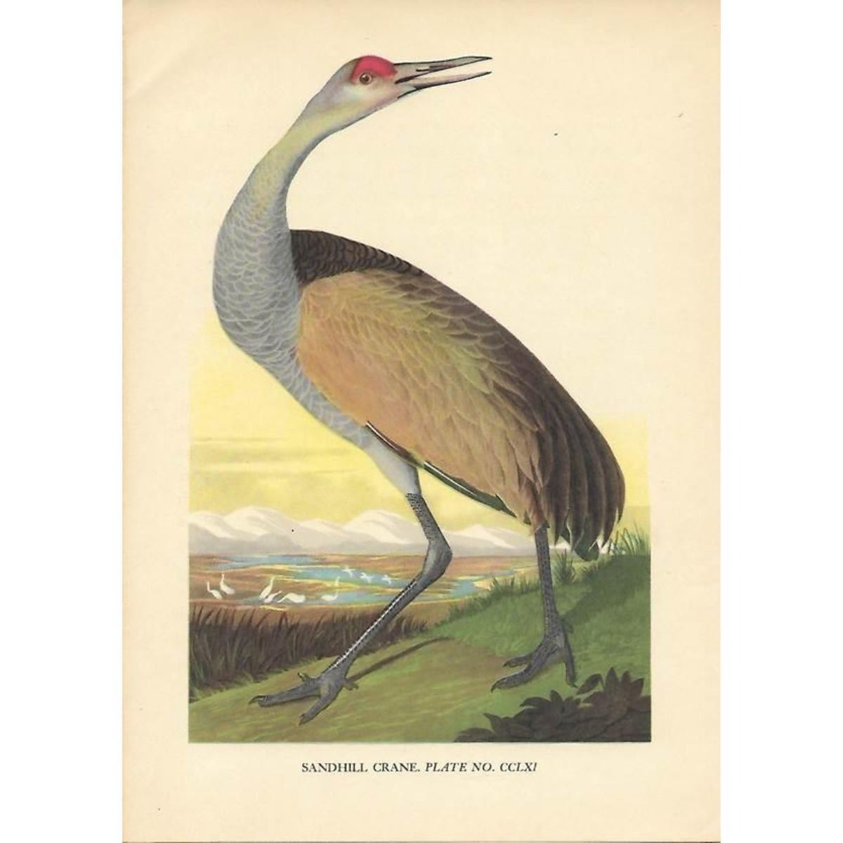 Mid 20th Century print, book plate print, from a copy John James Audubon's Birds of America. Sandhill Crane. 6" X 9".