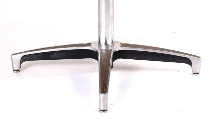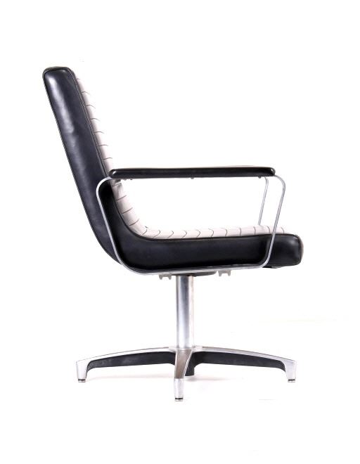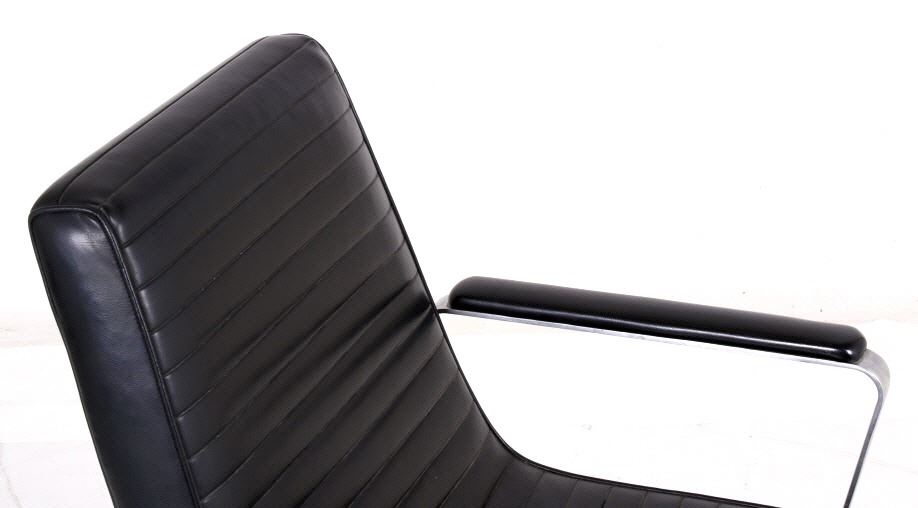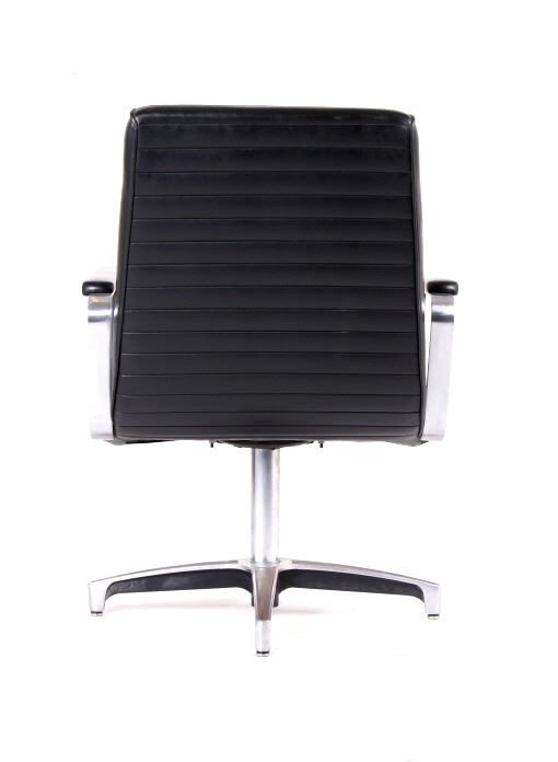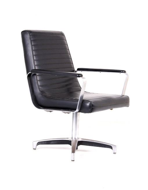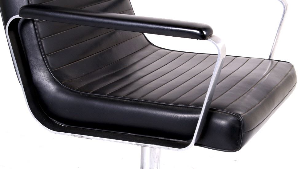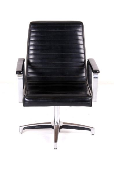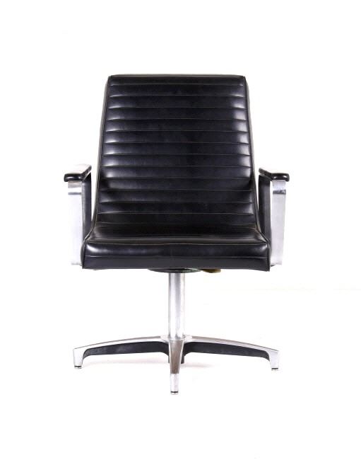 For your bidding pleasure is this Mid C. Modern Chrome Naugahyde Railroad Chair. This chair is in good condition, and displays well as a piece of history and shows a good solidly crafted metal frame that is chromed and swivels where the legs splay out to the ground. The seat and backing is made from naugahyde, which lends this chair a durability that other chairs made form different material would not possess. The measurements of this chair are 36" x 23" x 22".