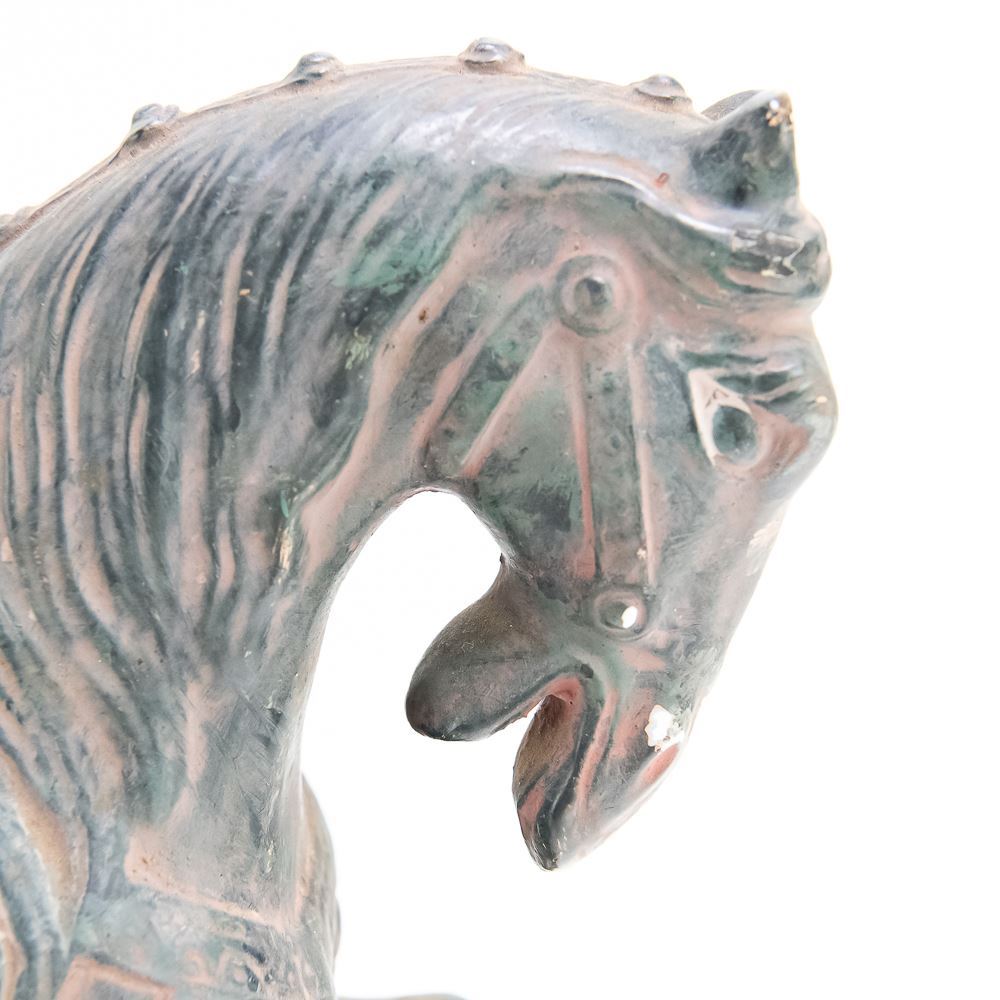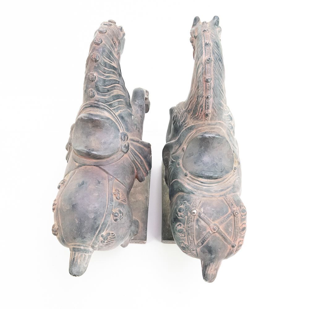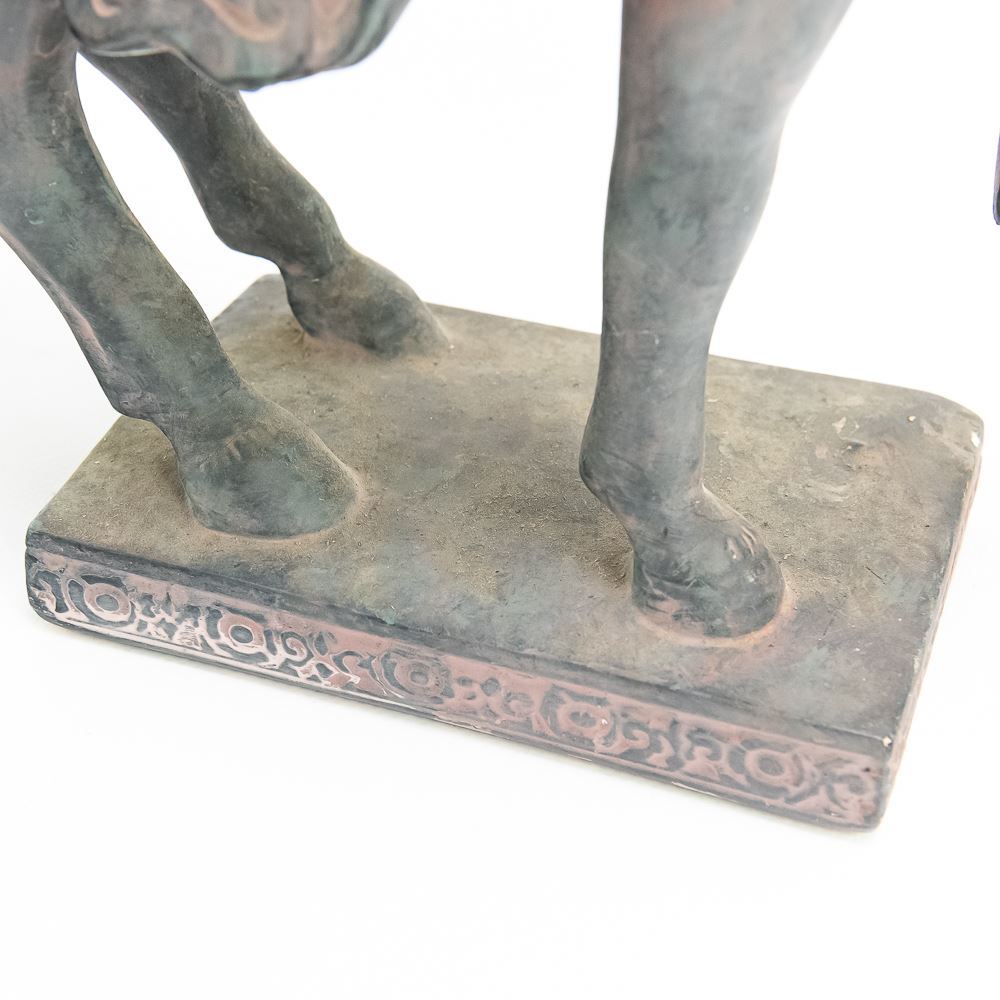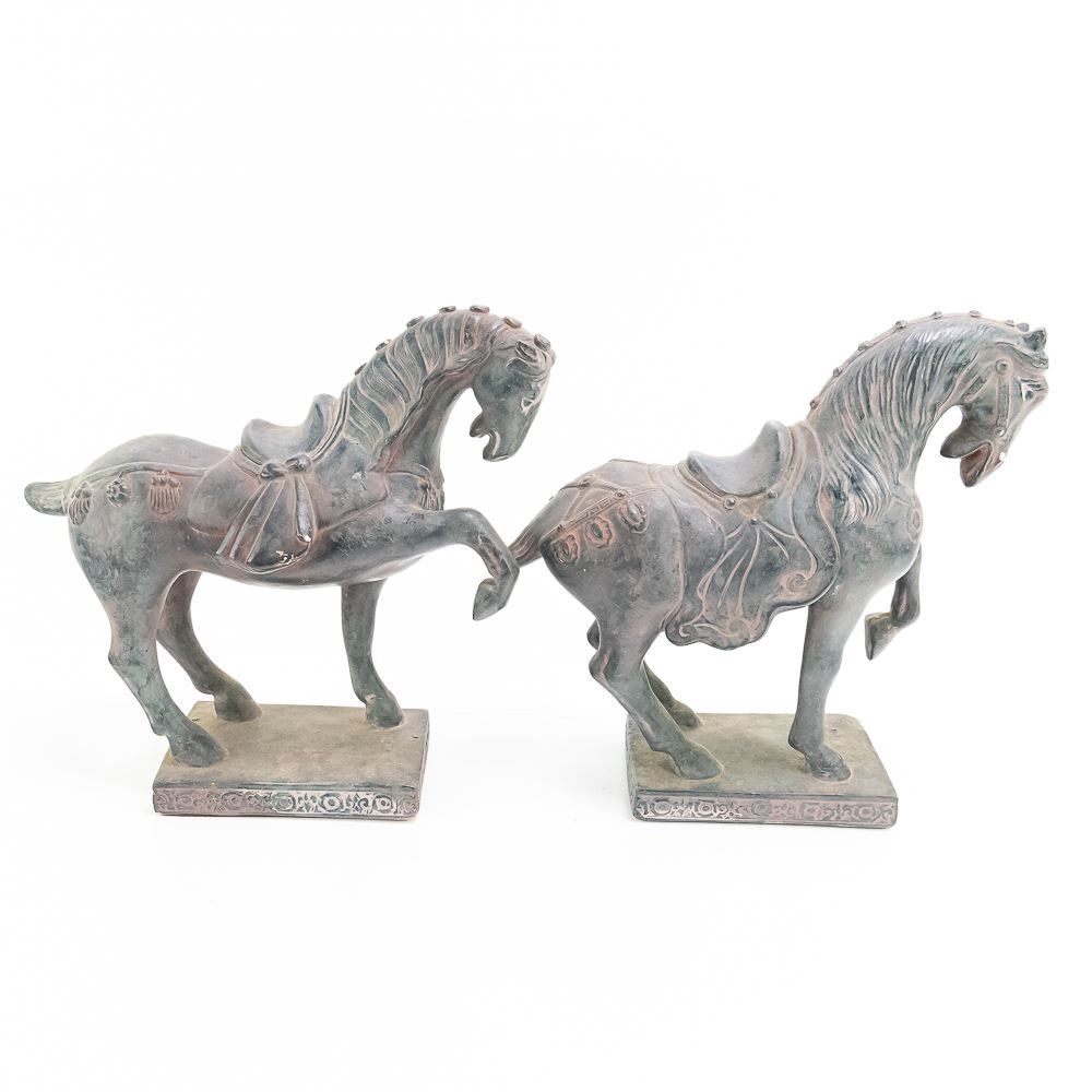 Attractive 11" ABCO Alexander Backer mid century chalkware show horse & war horse statue pair. In good overall condition with signs of age including light discoloration, chips, paint loss along with a couple small cracks on some of the legs; only noticeable under close examination. Perfect addition to your home or office. Please use photos to judge condition and bid accordingly.