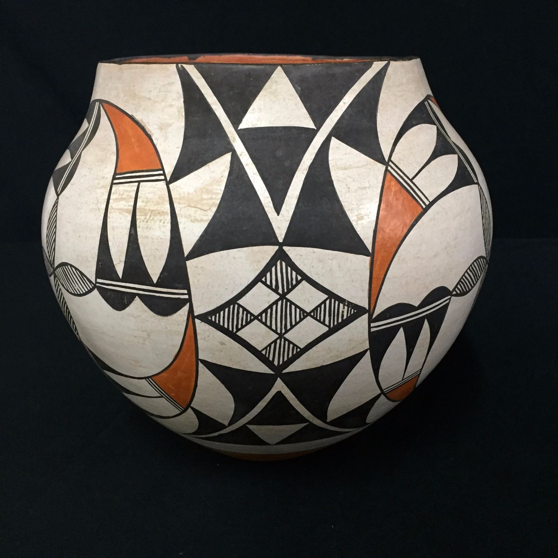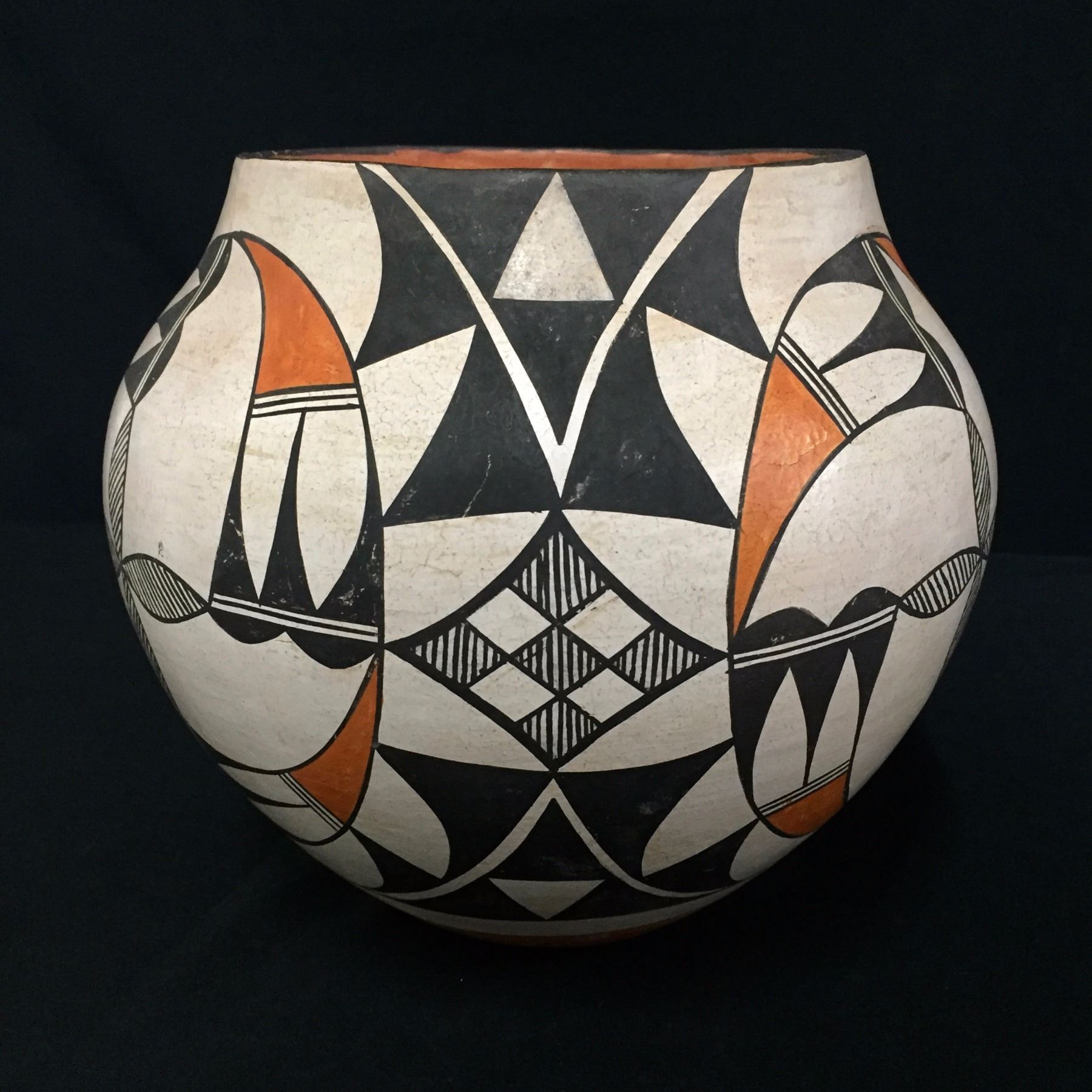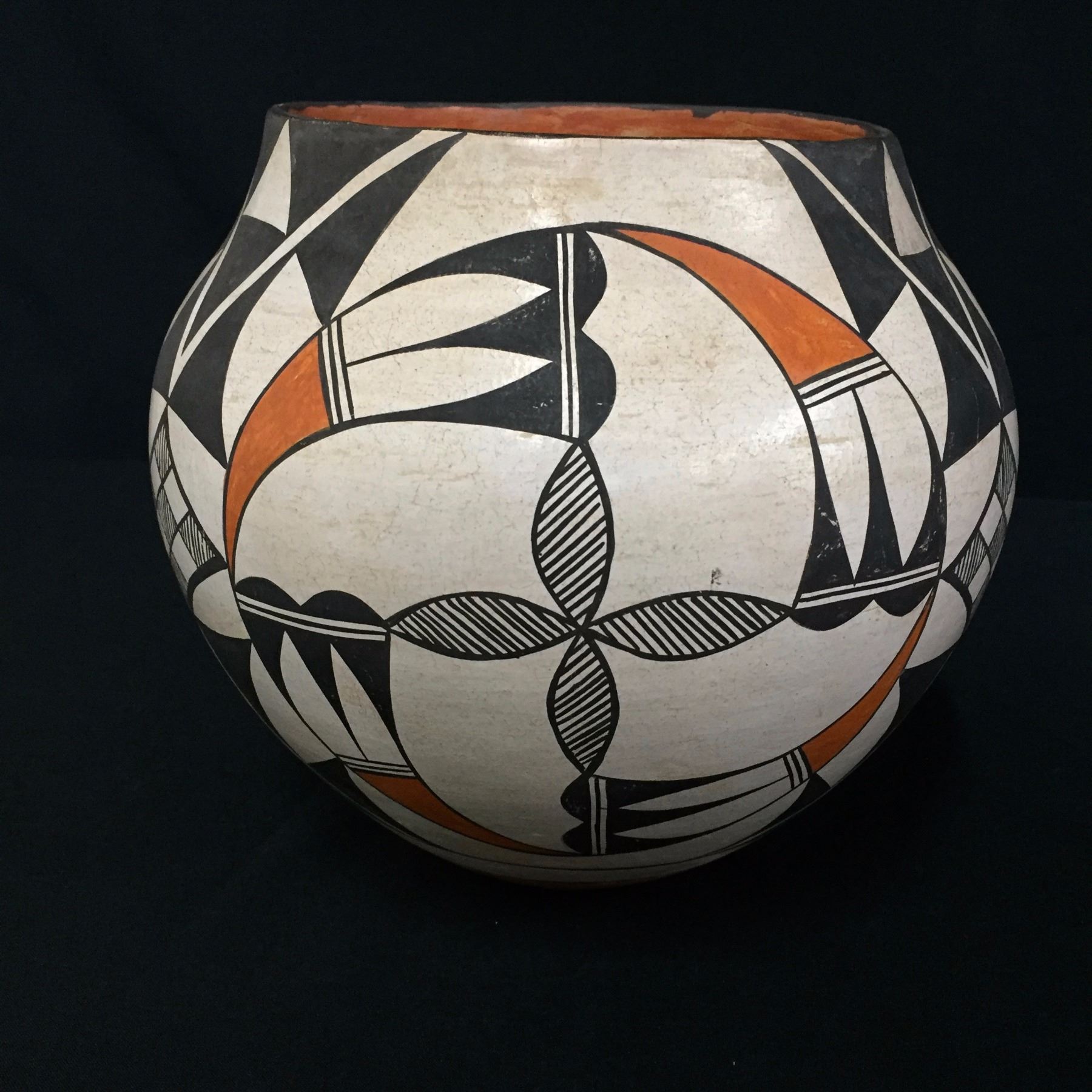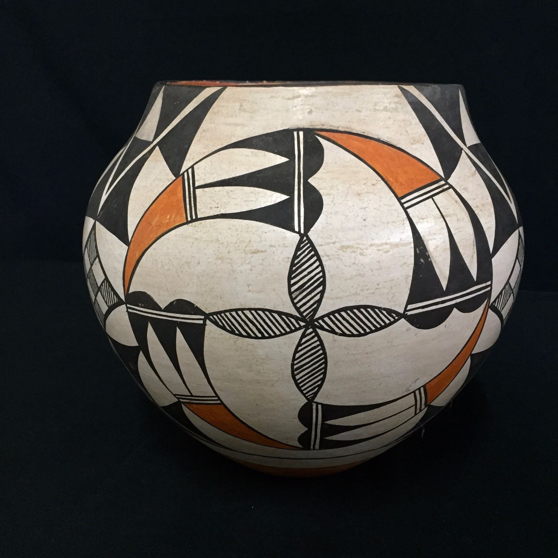 Maker: Unsigned. Approx. Age: Vintage. Size: Measures 9” x 8 1/2”. Additional Info: Mid-century handmade Acoma pot. Condition: Good for it’s age. Please look closely at the pictures - they are an important part of our description. Shipping: There will be a $10 handling / packaging fee for shipping this lot. The actual cost of postage will be added on top of that.