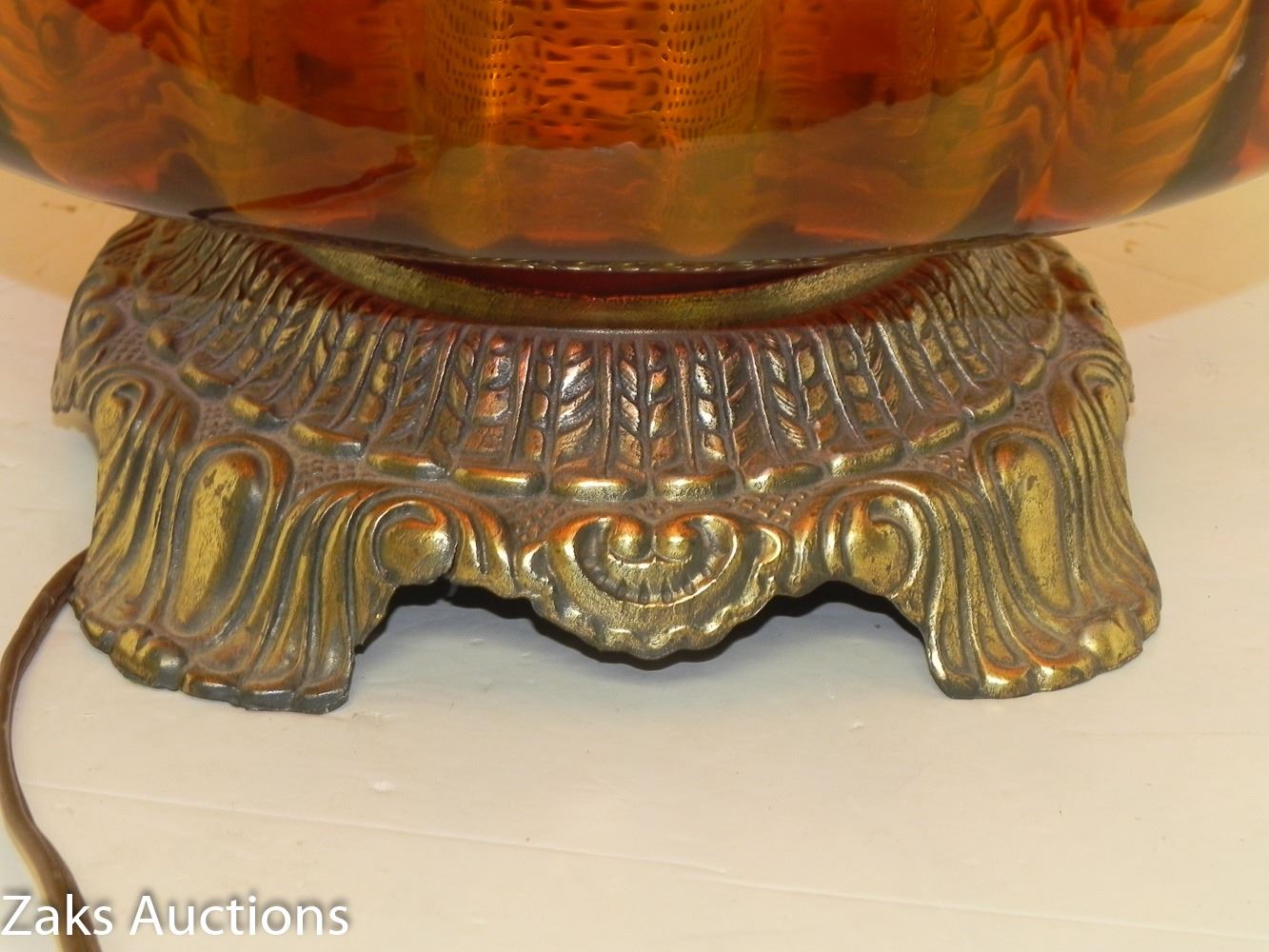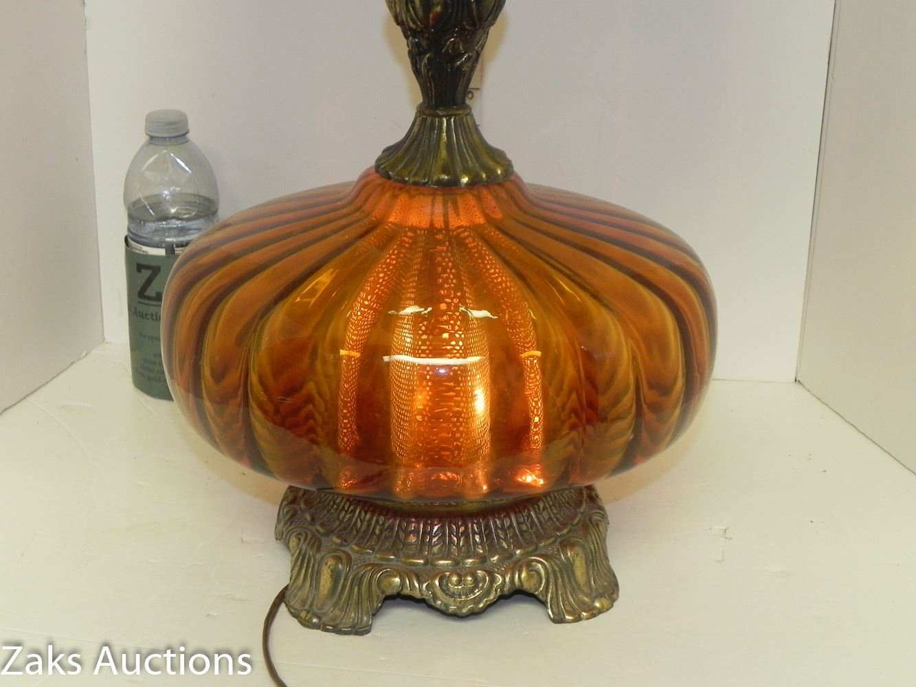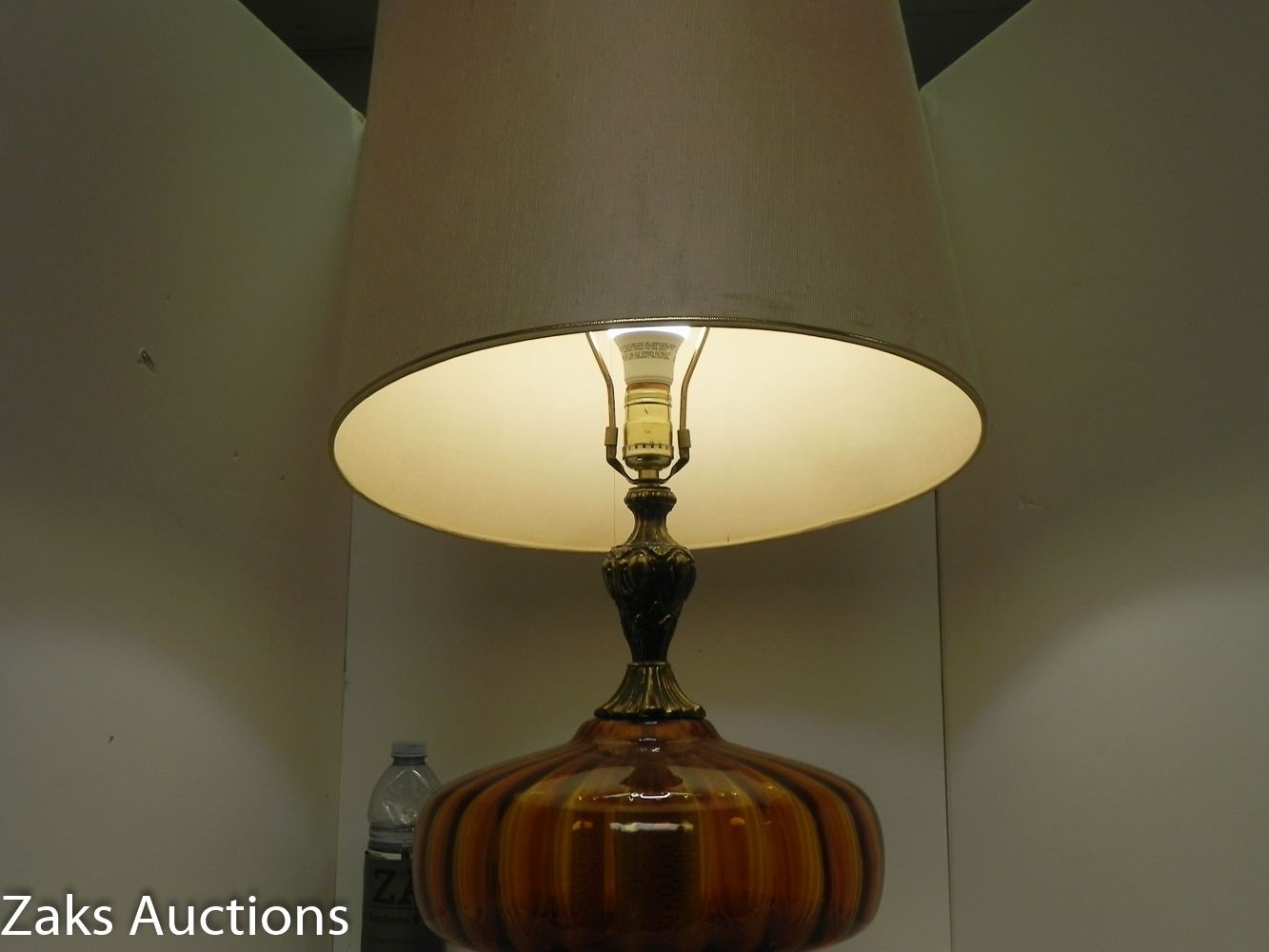 Mid Century Amber 2 Light Living Room Lamp (working). Very Neat Piece. You can choose to have the upper light, the lower light (inside the glass) or both on. Must see all pictures