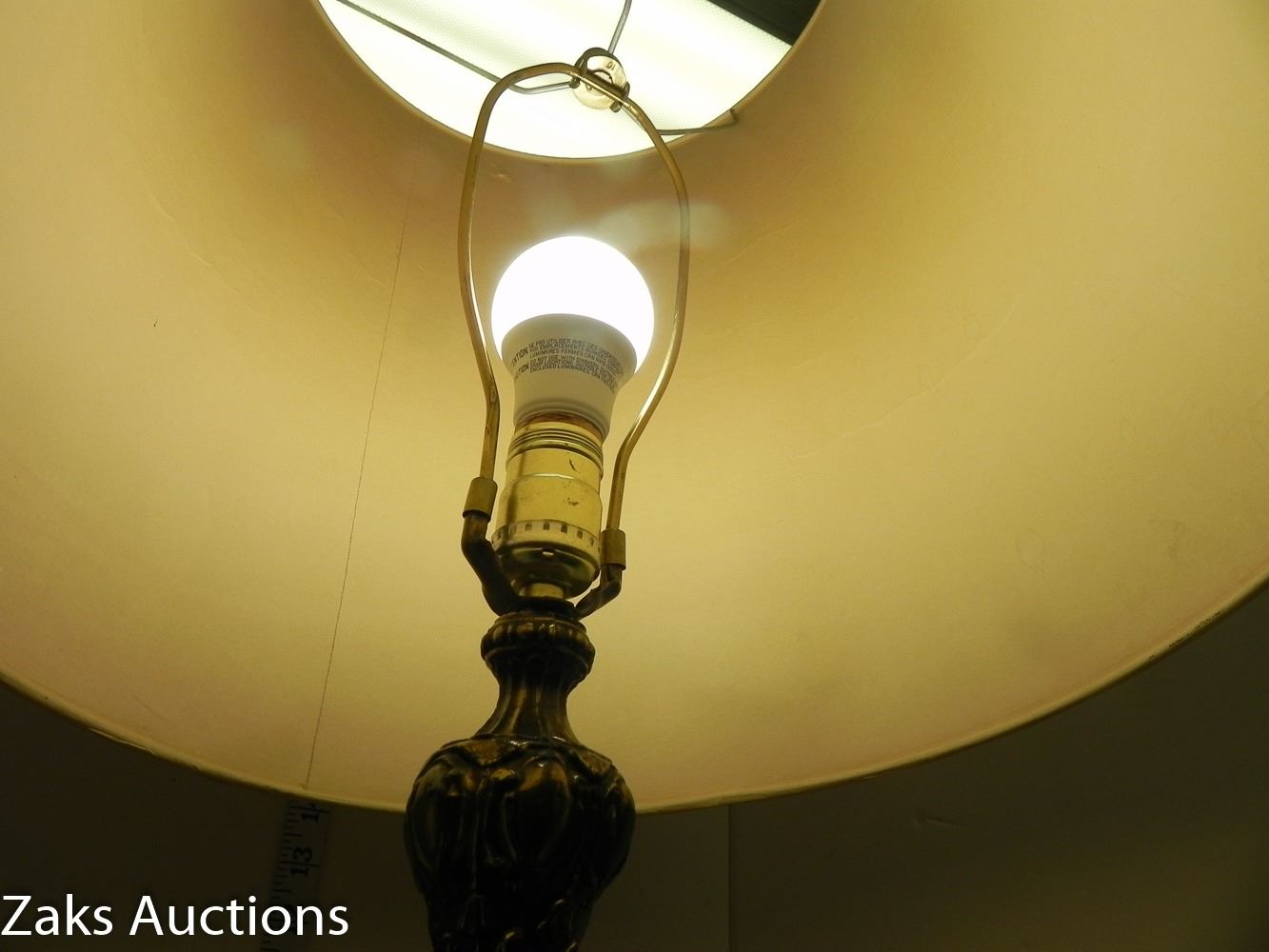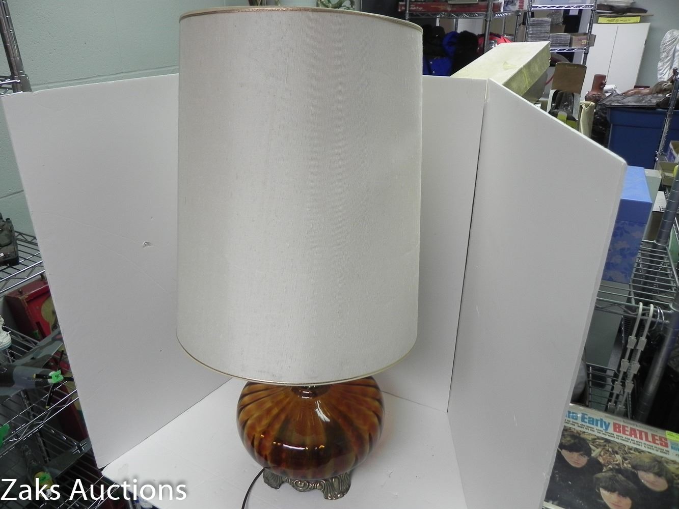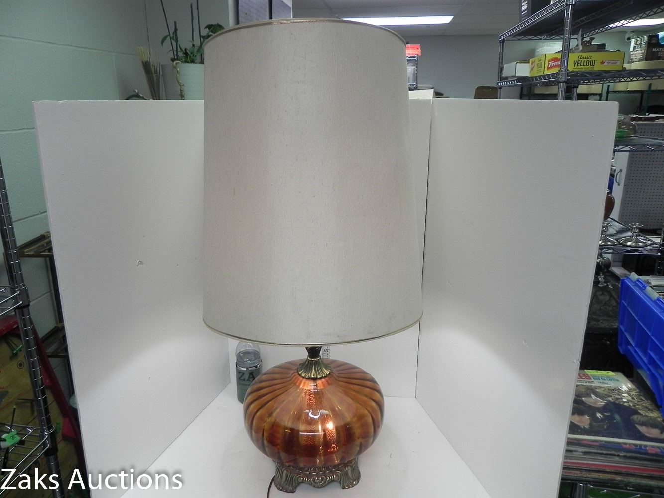 Mid Century Amber 2 Light Living Room Lamp (working). Very Neat Piece. You can choose to have the upper light, the lower light (inside the glass) or both on. Must see all pictures