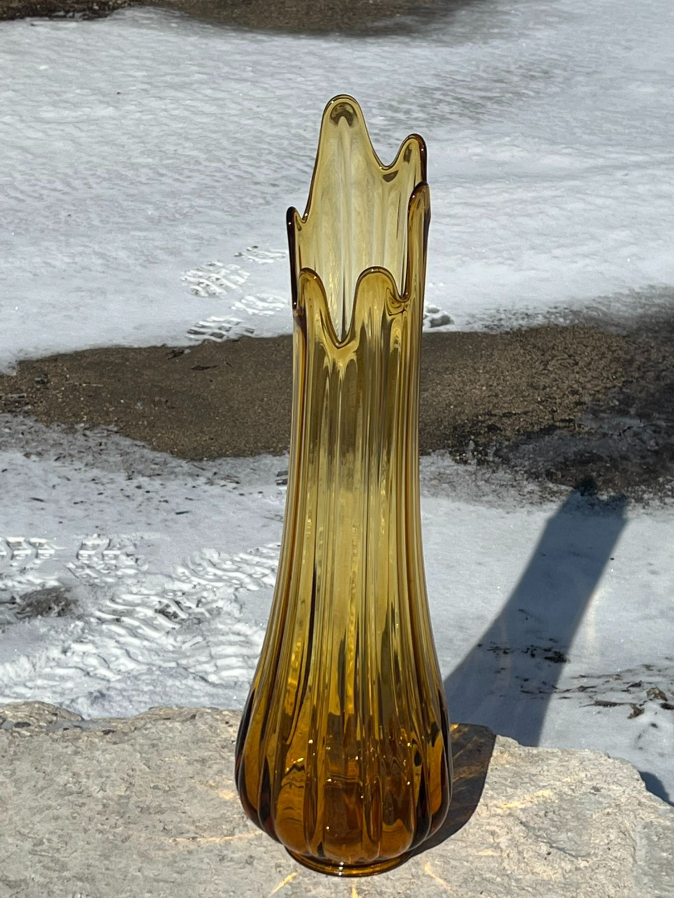 Mid Century Amber/Yellow Swung Glass Vase - Large (Approx: 27.75"T 8.5"W)