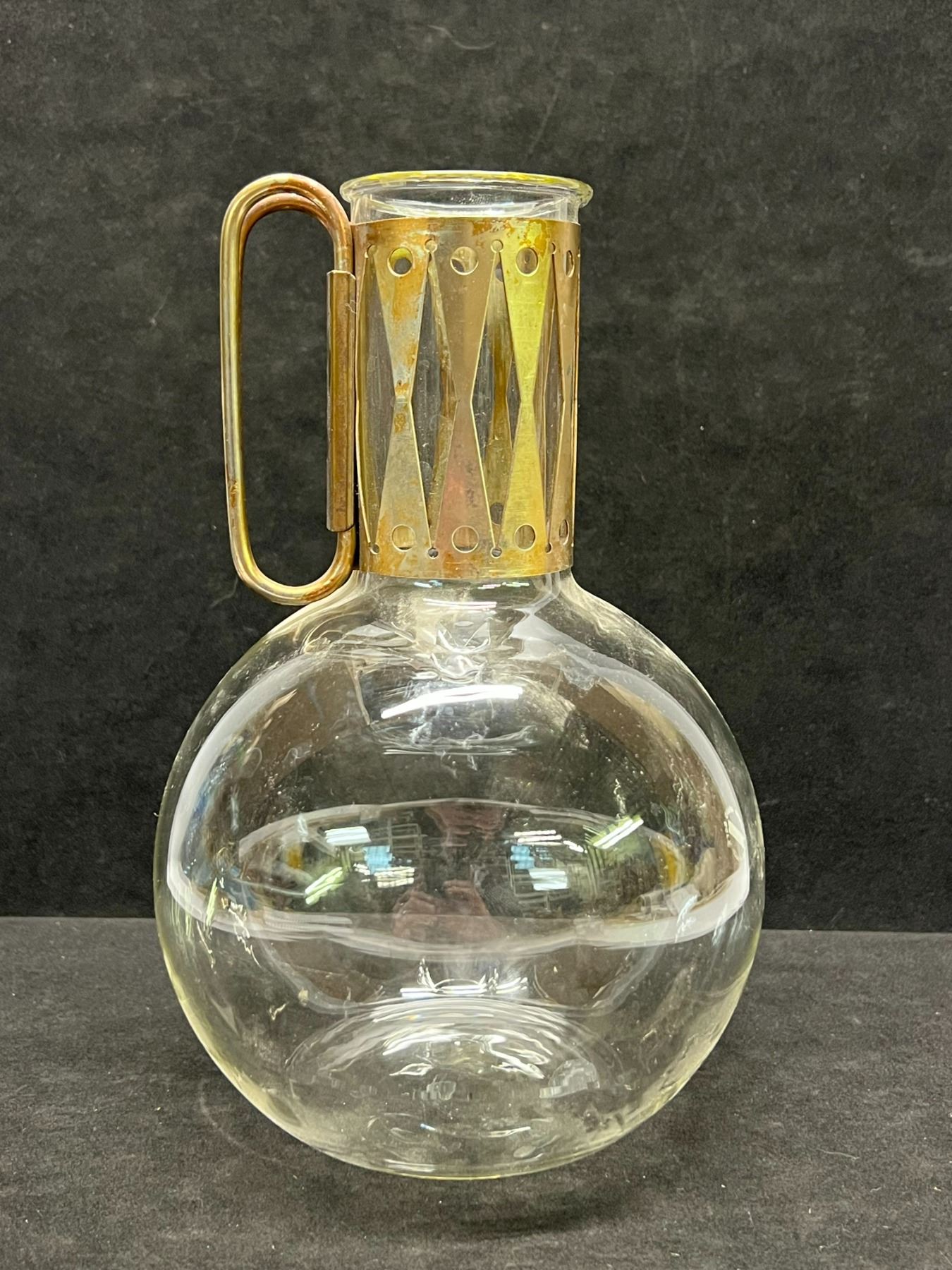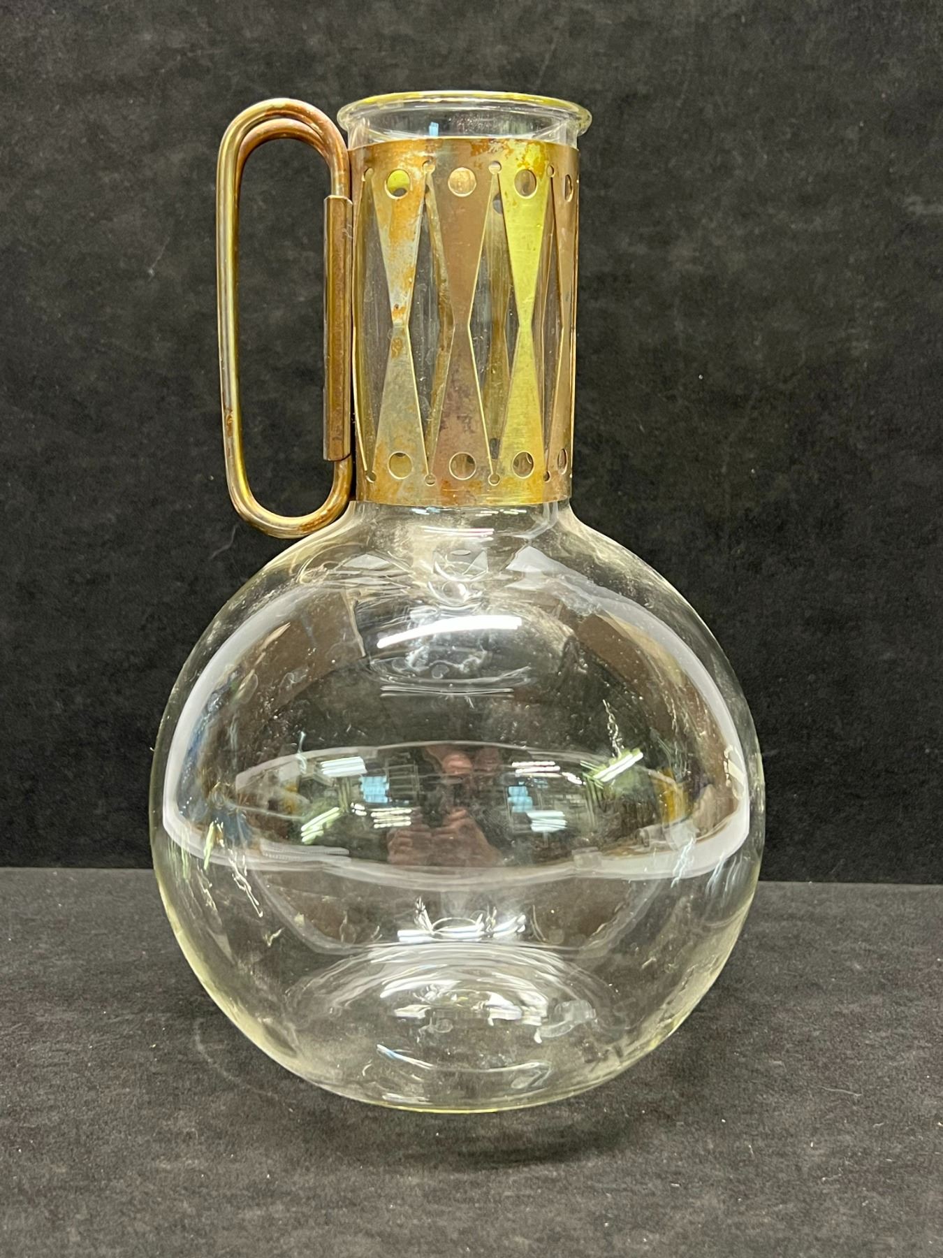 Mid Century Atomic Corning Glass Carafe Decanter w/stand Appr: 11"T 6"W