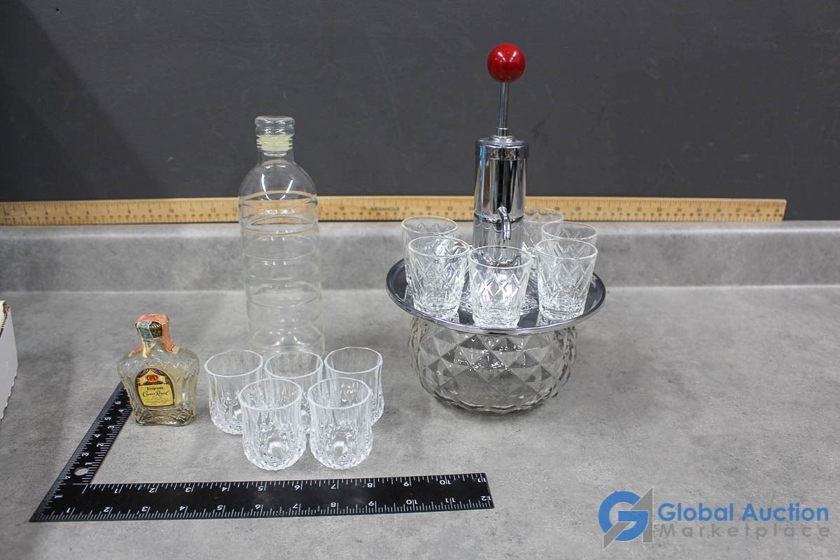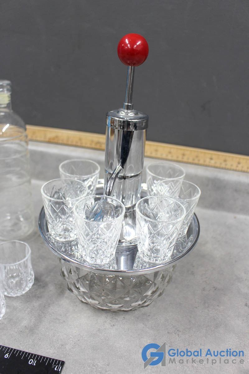 Mid Century Bar Set w/Liquor Dispenser & Related