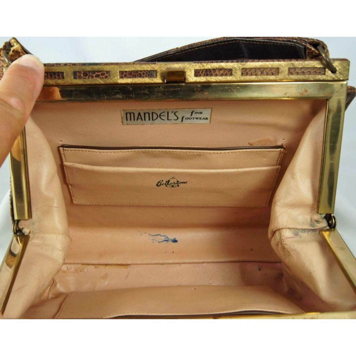 Vintage mid-century (1950's/1960's) alligator handbag. Originally sold at Mandel's. *** worn areas on bottom edges & sides from age, handle is worn & strap has broken off, needing repair, the frame sturdy & in good condition.Â