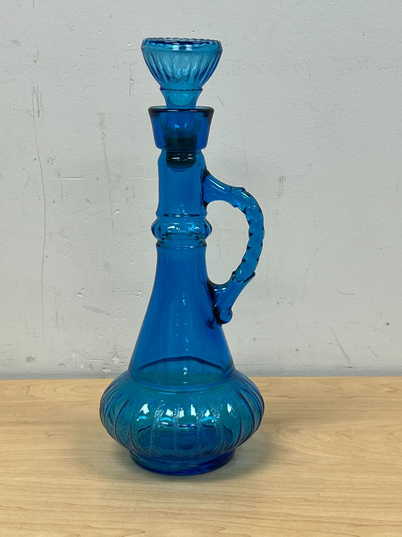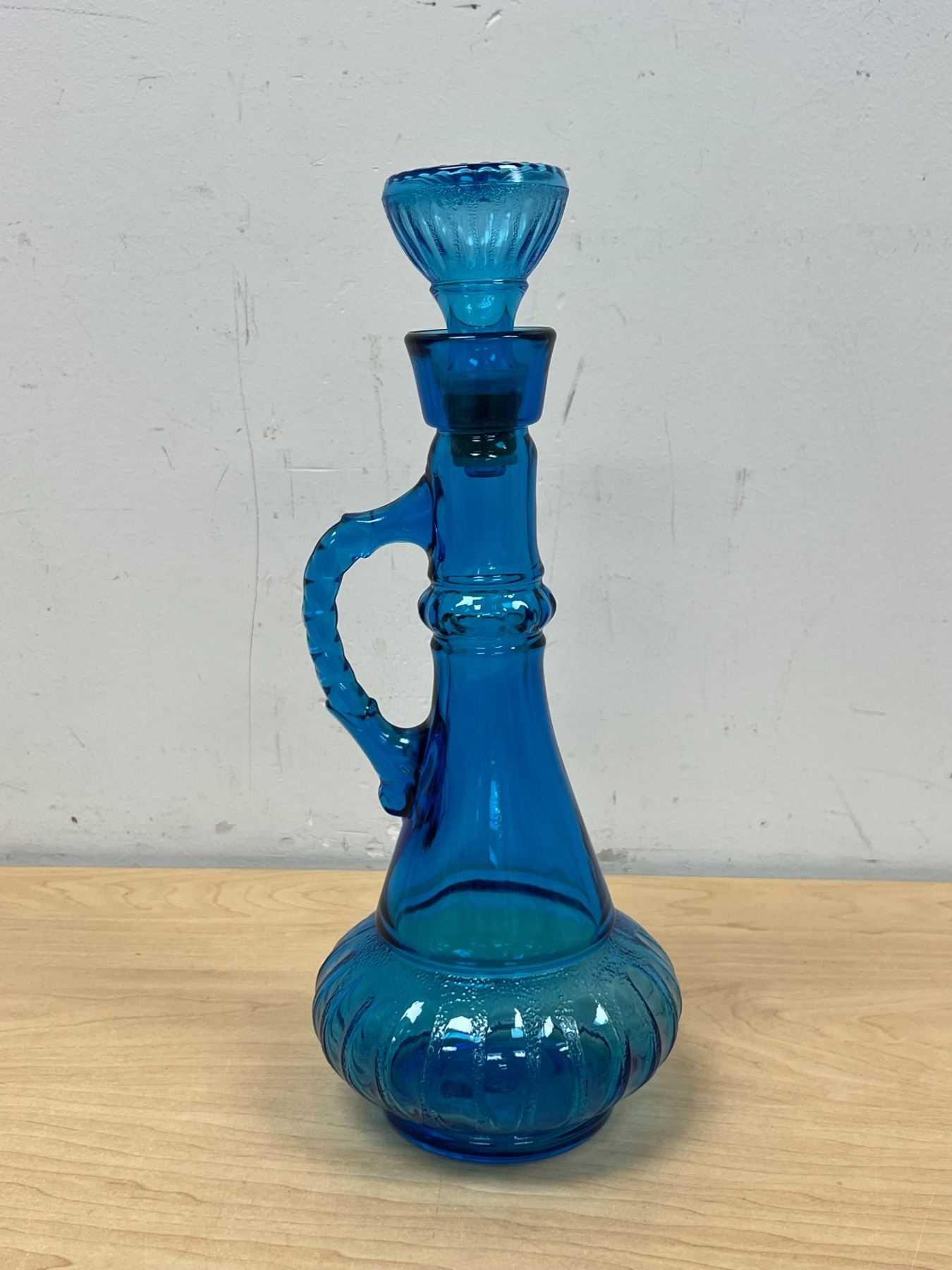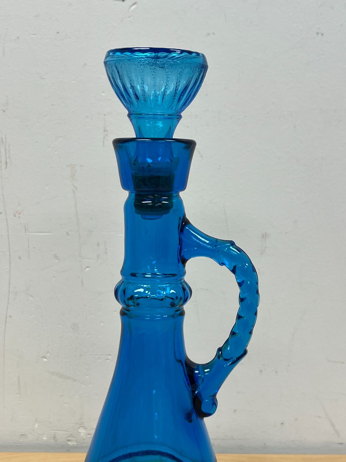 Mid Century Blue Glass Bottle & Stopper Decanter - Approx: 13"T