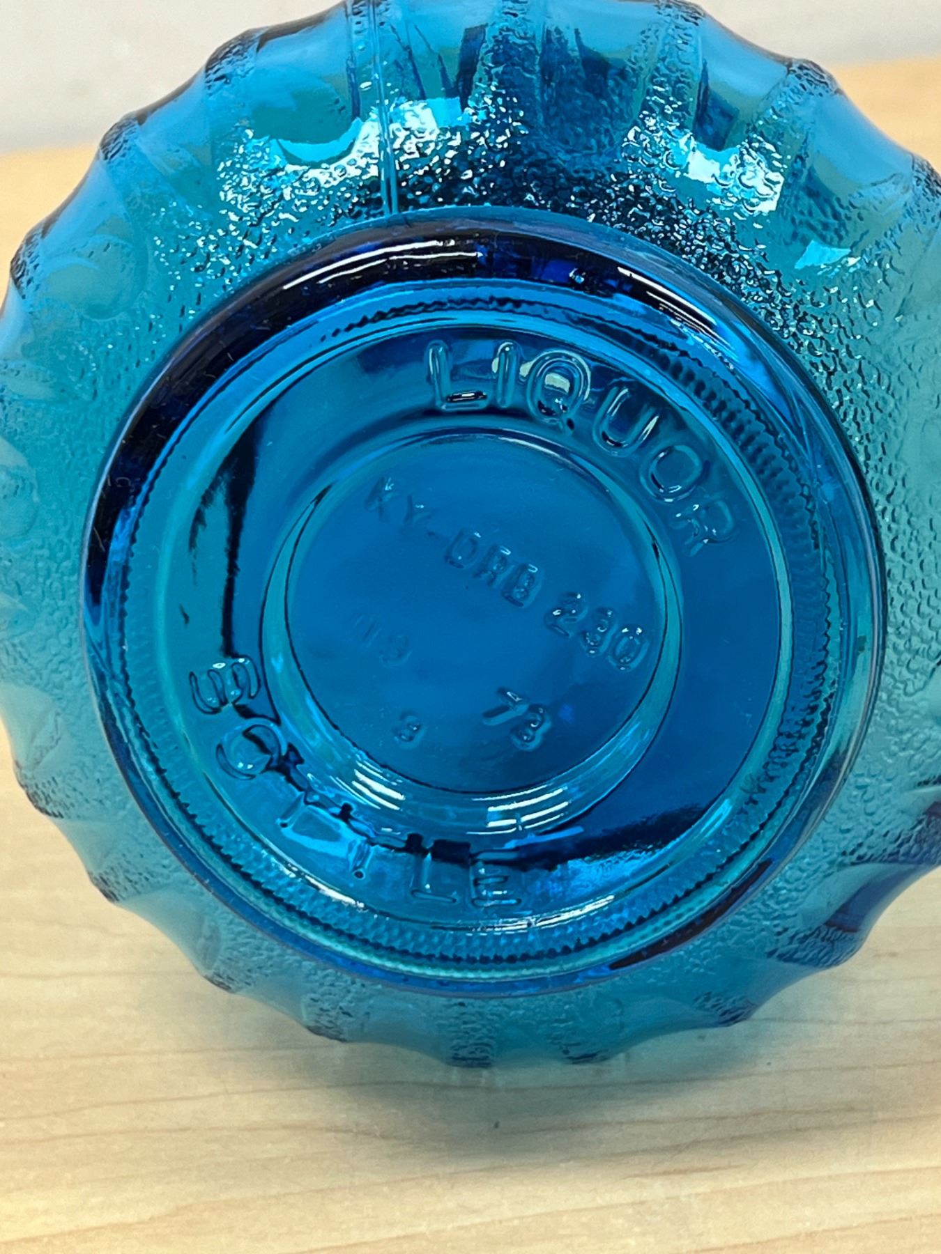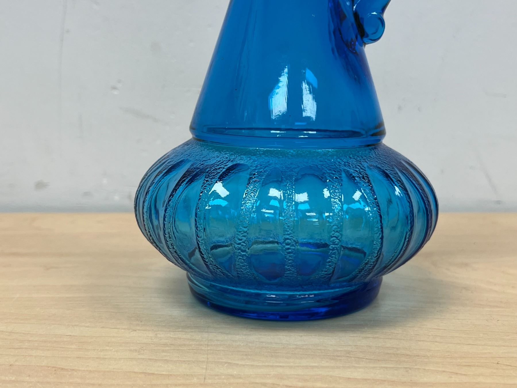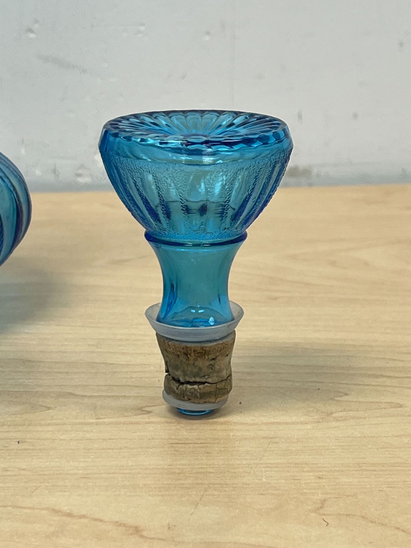 Mid Century Blue Glass Bottle & Stopper Decanter - Approx: 13"T