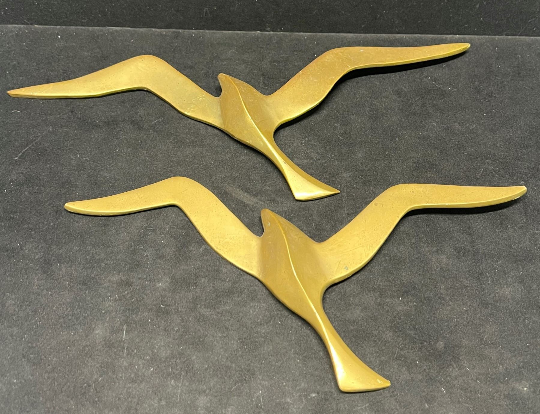 Mid Century Brass Birds in Flight (larger is about 12.5" long)