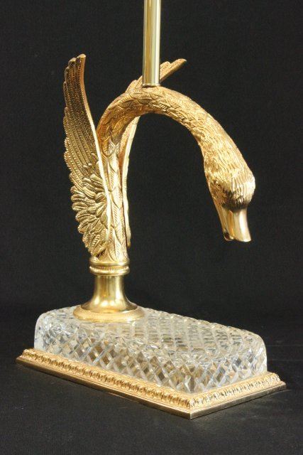 Manhattan Lamp Co. of Hollywood Ca. Approx. 27" H x 17" W. Good condition. Crack to crystal.