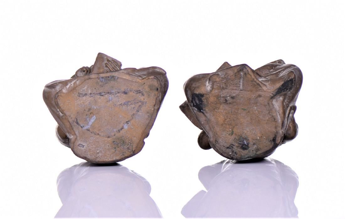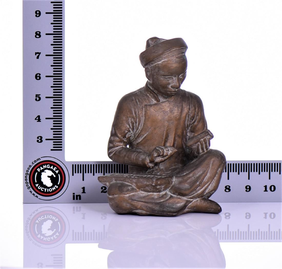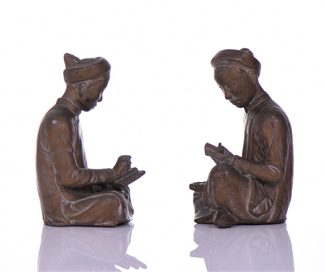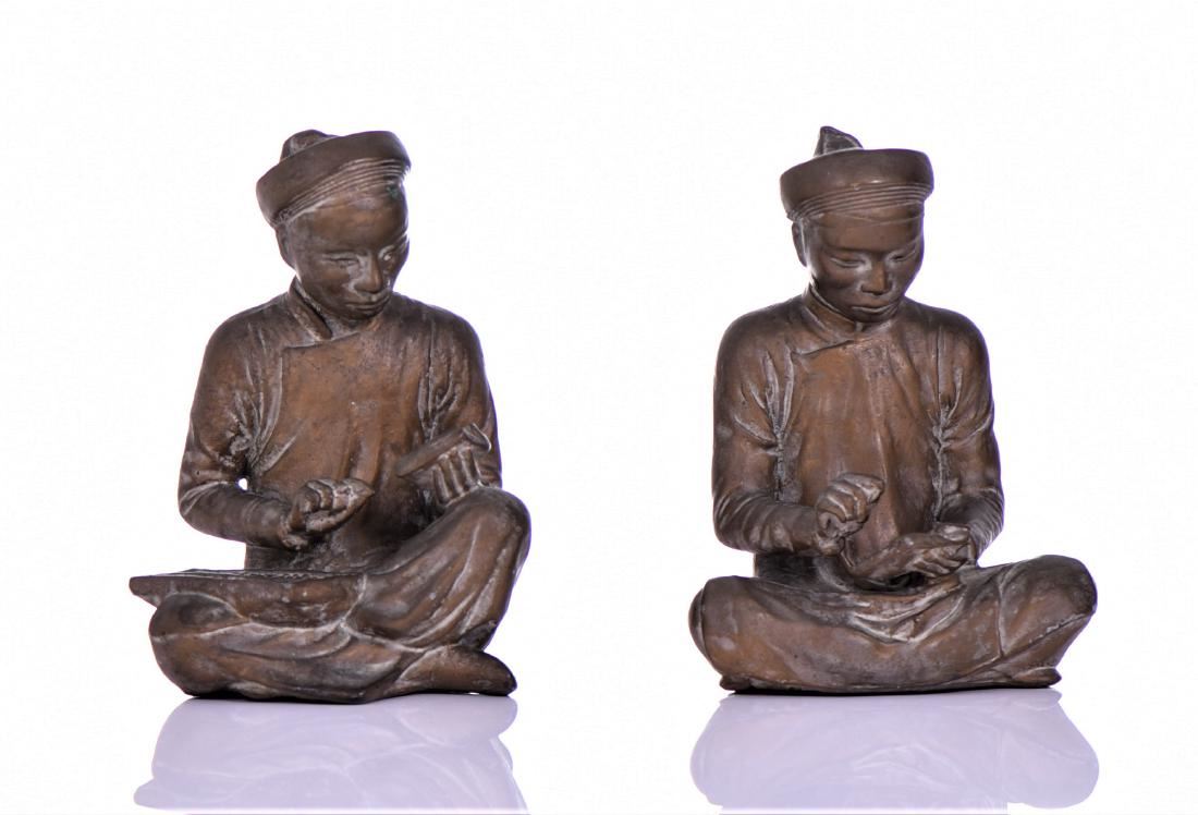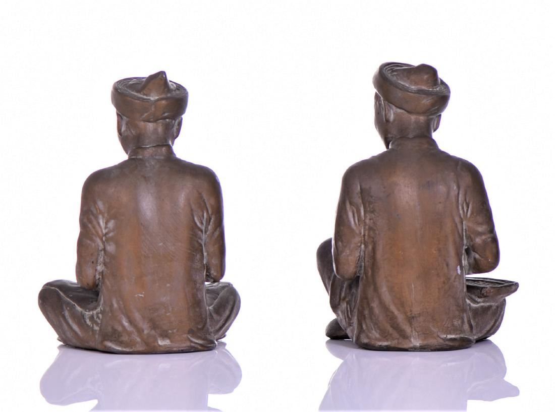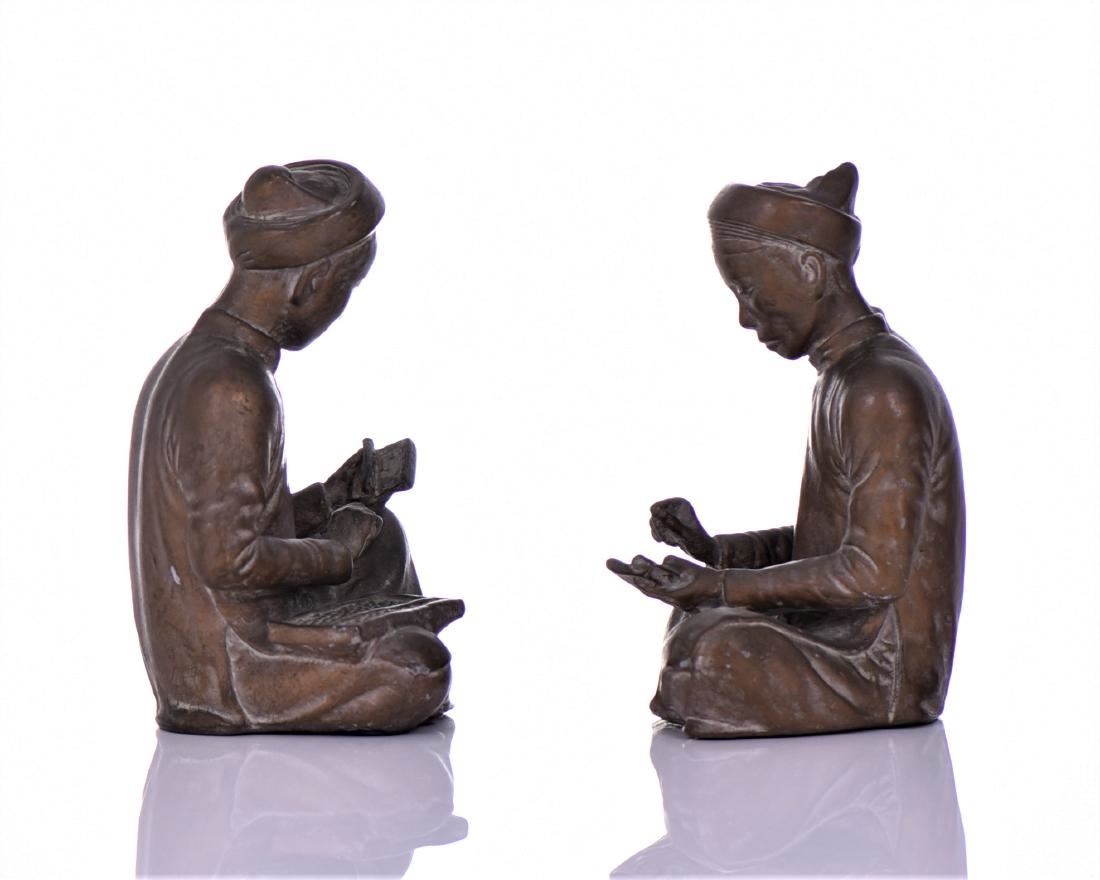 Mid-Century Bronzed Plaster Asian Seated Scholar Bookends. Both Sit Indian-style With A Book In Hand And One Has An Abacus On His Lap. Estimated more than 50 yrs old. (Pangaea Auctions) Size and/or Weight: See Measurement Photo. (Photos Represent The Lot Condition.)