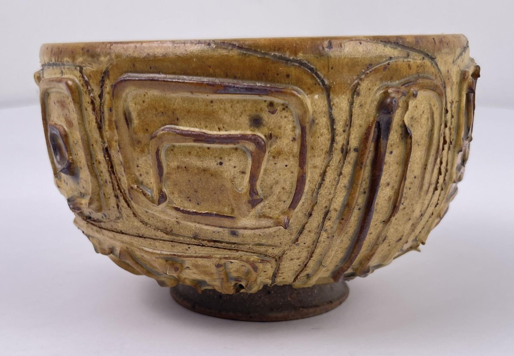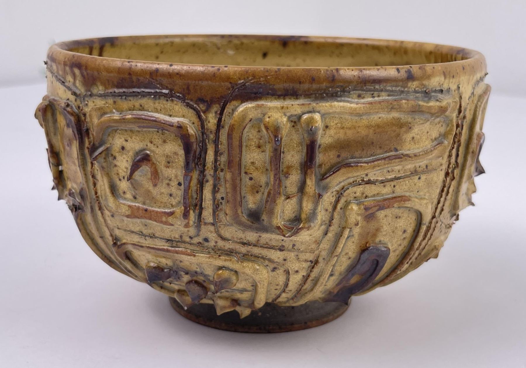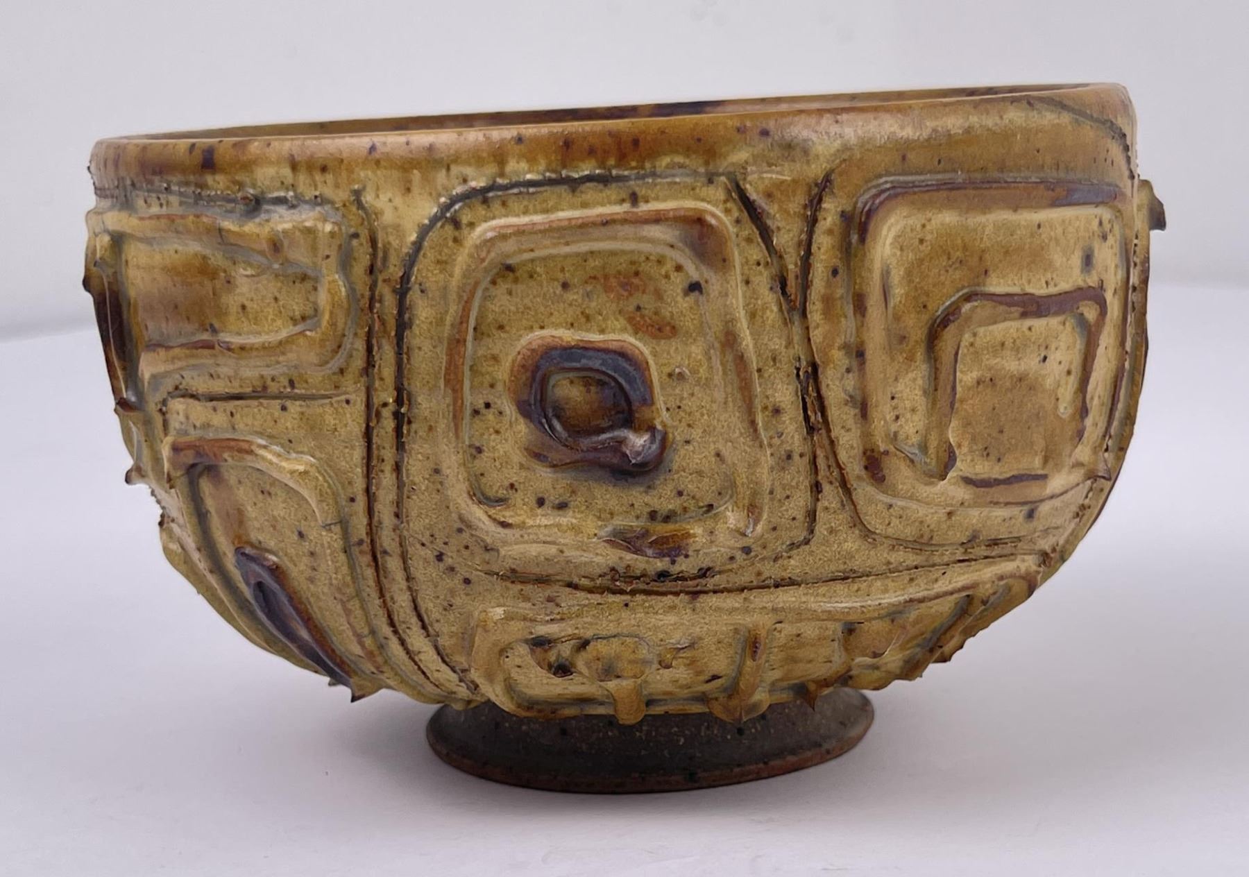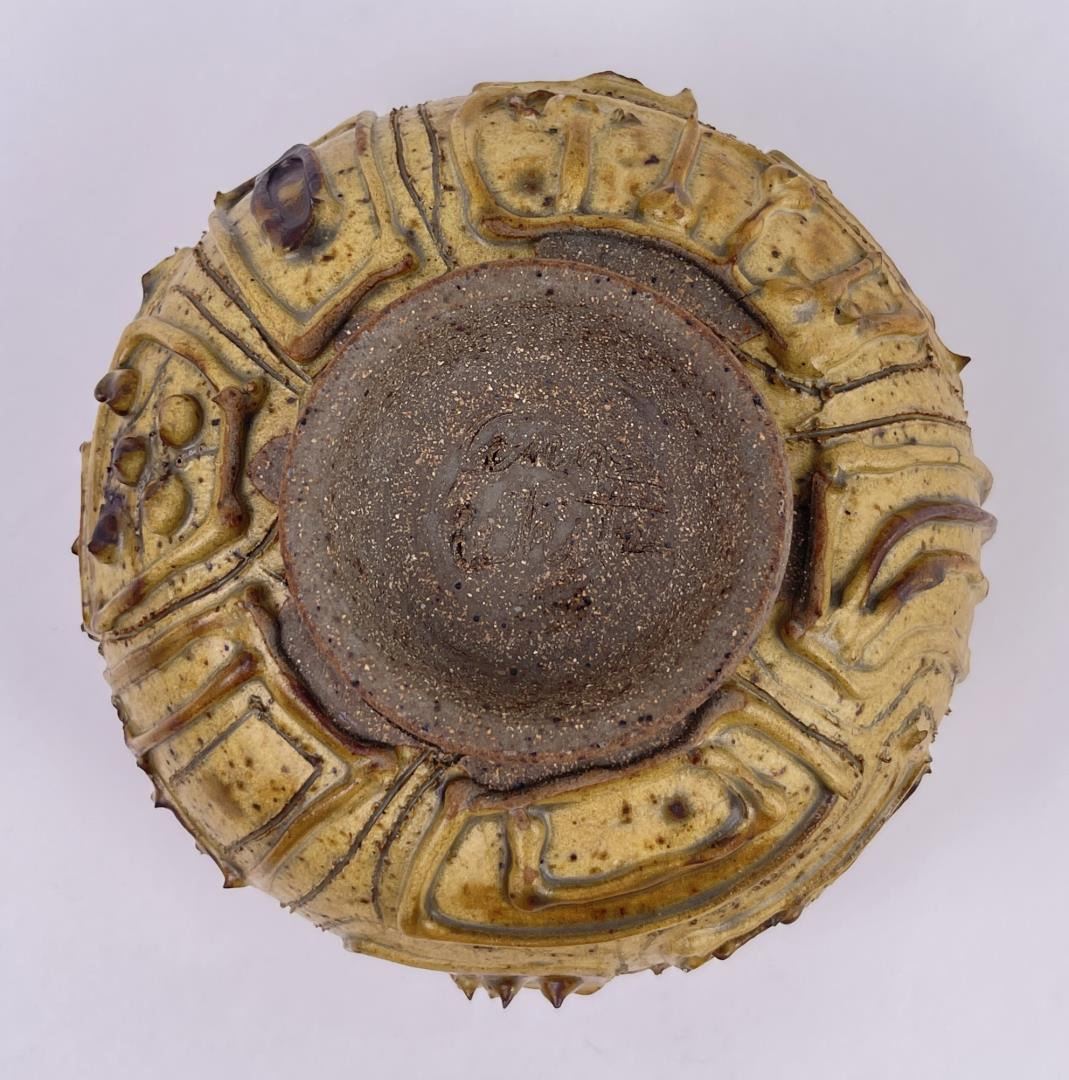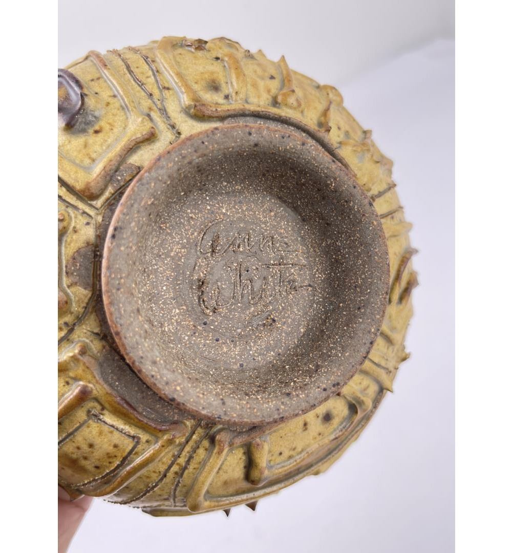 Made by Anne White of Bell Buckle Tennessee. 6" diameter, 3 3/4" tall.