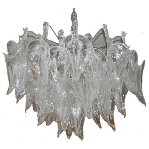 This is a wonderful vintage chandelier by Camer Glass Co. of New York. Model N 3360. Measures 21" across and 16" high. Original extra glass leaves included. Fine working order. Founded in the 1950s by George & Paul Camerino, Camer commissioned glass objects and lighting from the finest artisans in Murano Italy until their closure in the 1970s. This item resides in Chelsea in Manhattan ( New York City ) and may be seen by appointment. Thanks for visiting. Please let us know if you have any questions or comments.