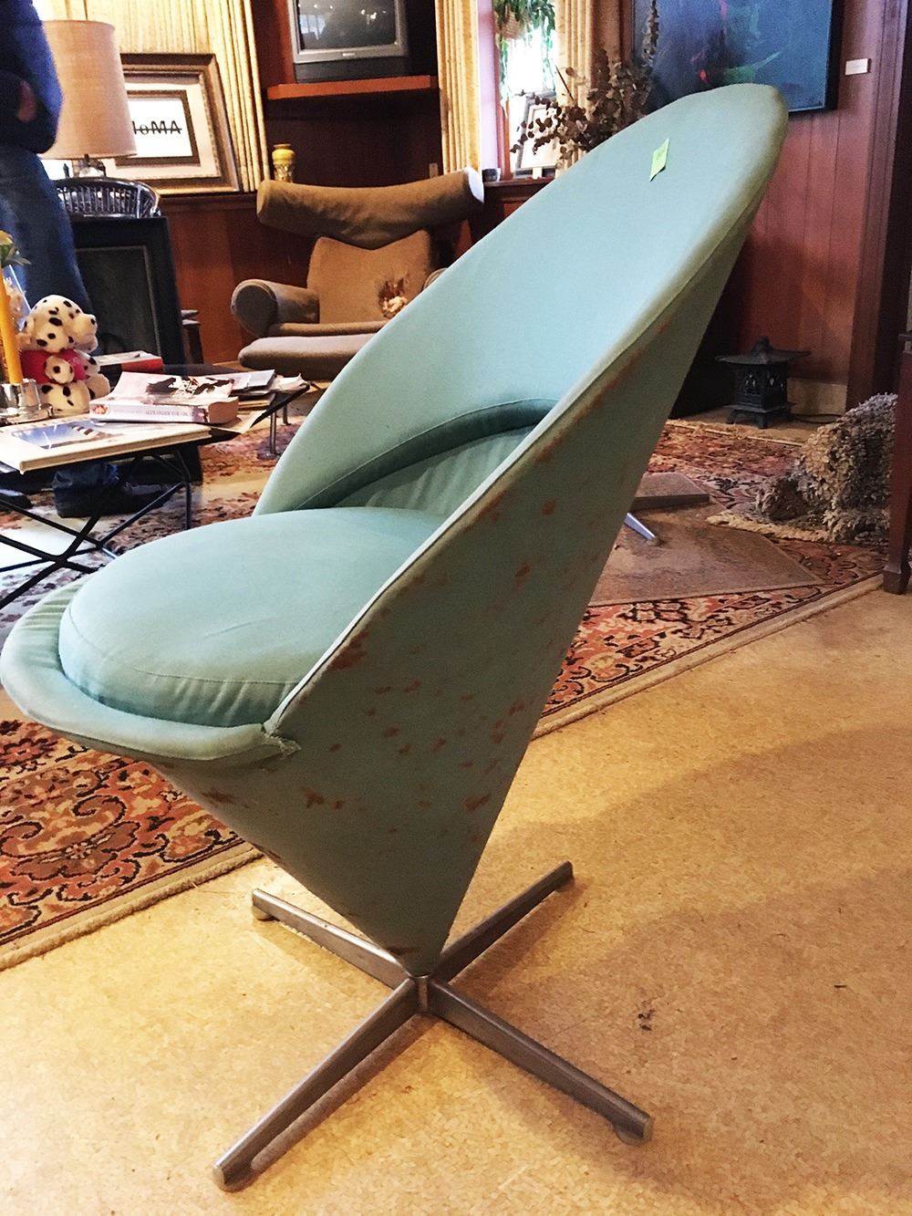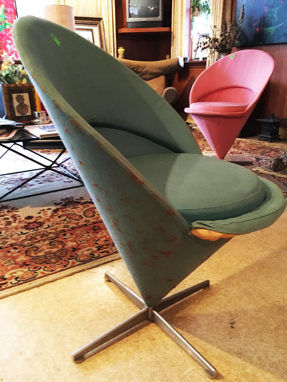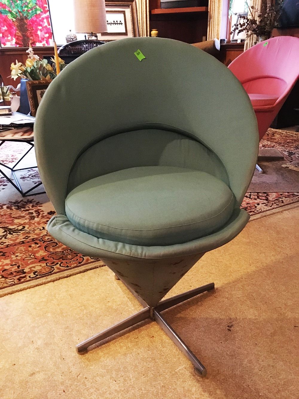 Vintage green mid-century Danish Modern Panton Knoll cone chair. pd