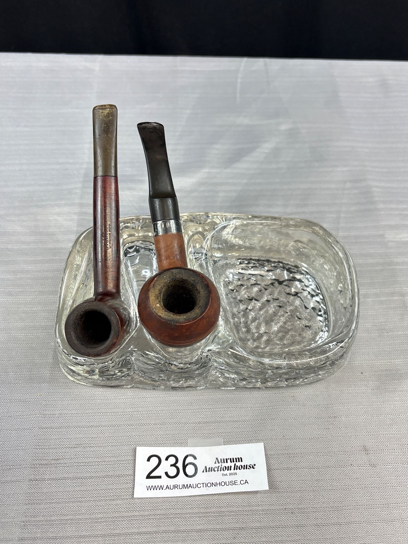 Mid-Century Cut Crystal Pipe Stand/Ashtray w/ Pipes (1 Sterling Band - Hallmarked)