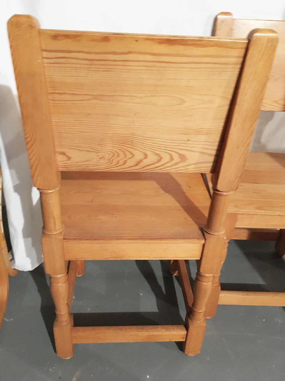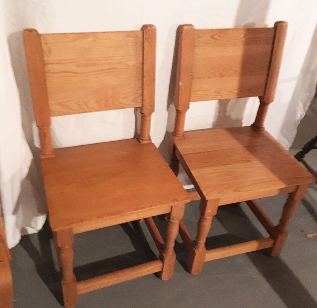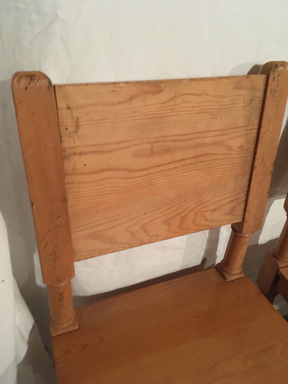 Pair of matching Mid-Century Danish, Swedish Pine chairs, measure approx. 17.25 inches x 15 inches x 35.5 inches.