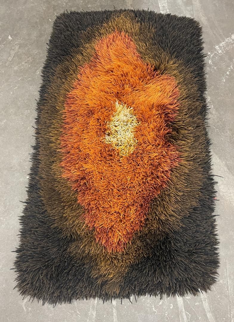 Very nice rug. 31" by 56". Excellent example of a Danish Mid Century Rug.