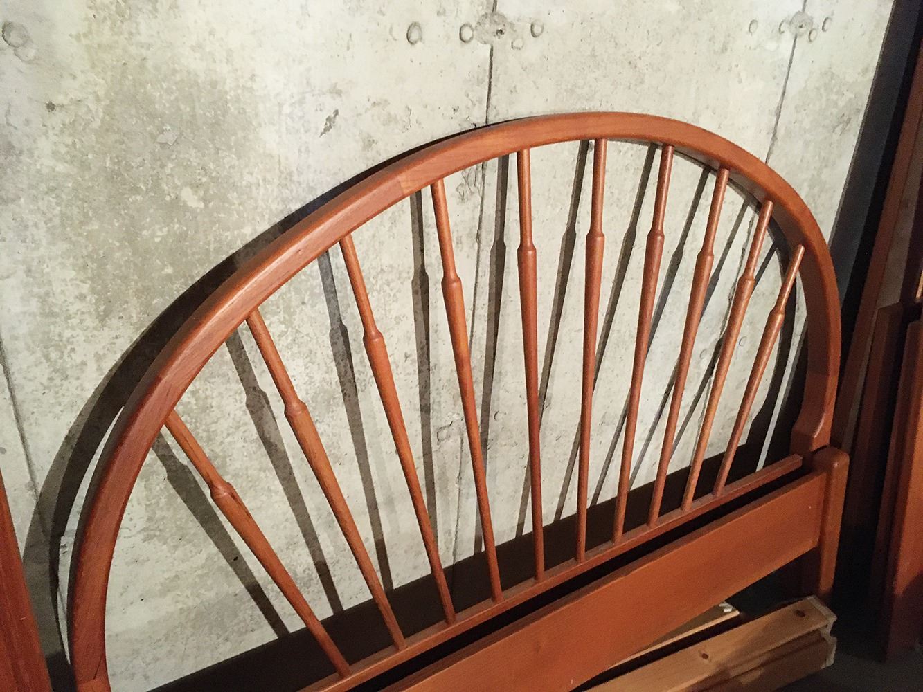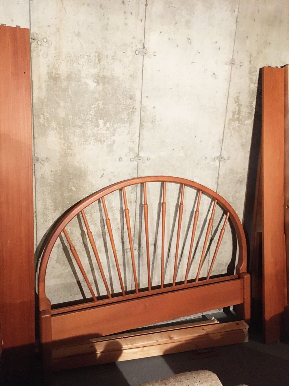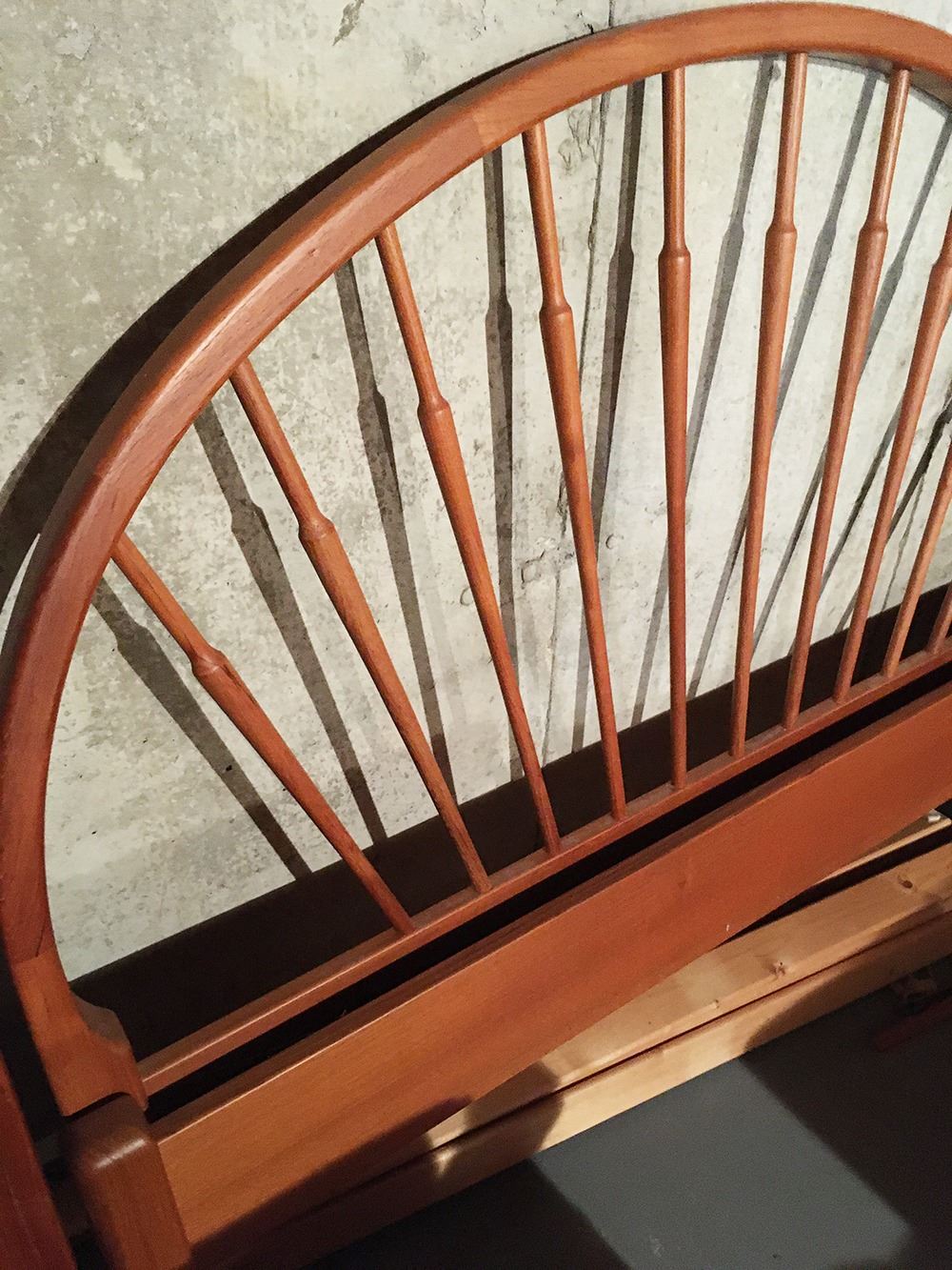 Mid-Centry Danish Teak Headboard and footboard, double bed size, side rails need repair. Headboard measures approx. 58 inches wide x 46 inches tall.