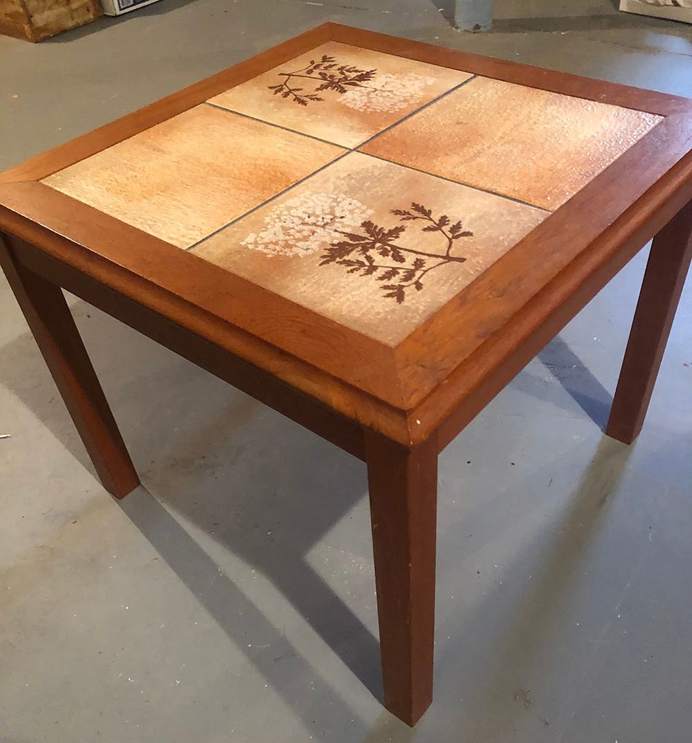 Mid-Century Danish small tile top end table, Denmark, measures approx. 20 in. x 20 in. x 16 in.