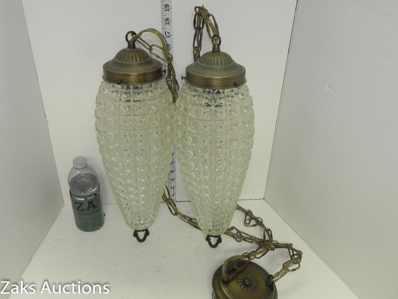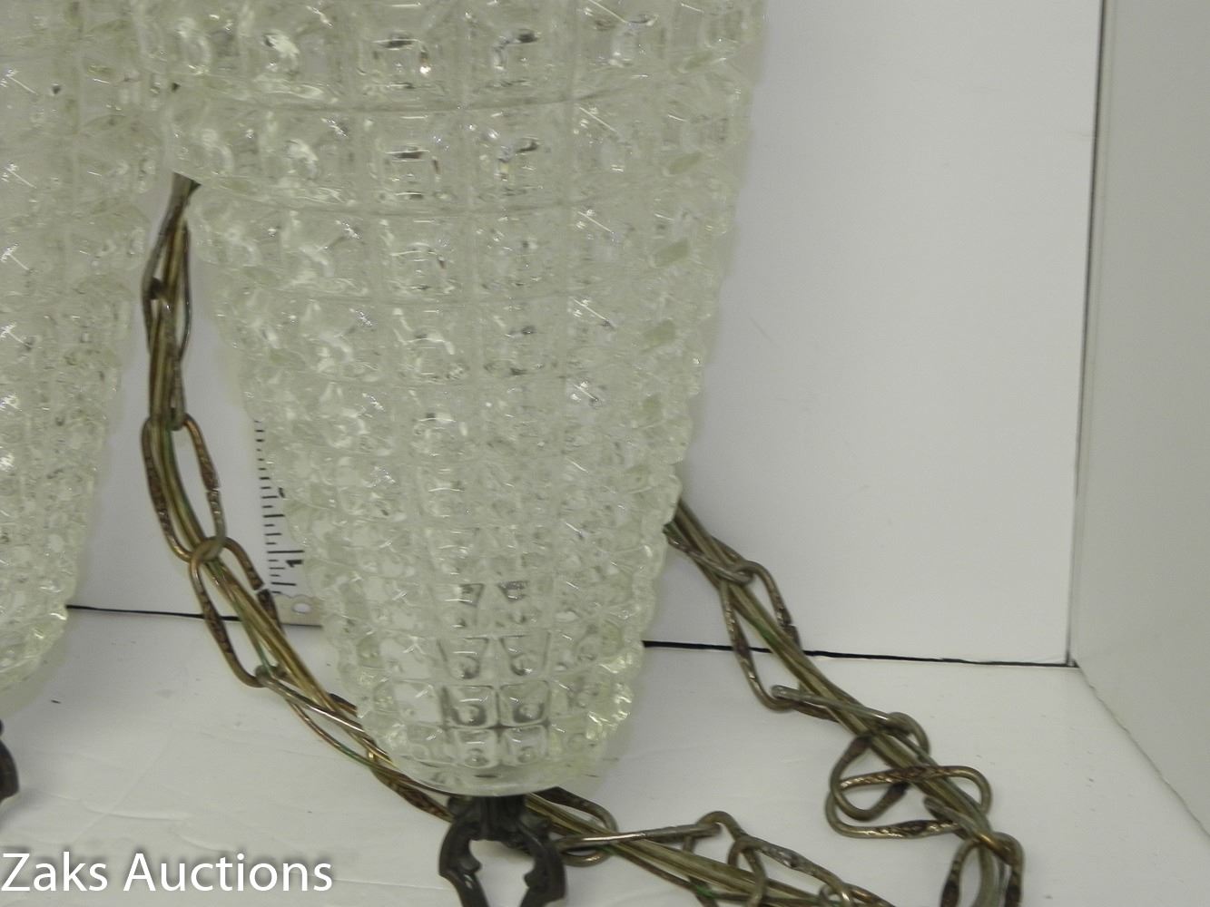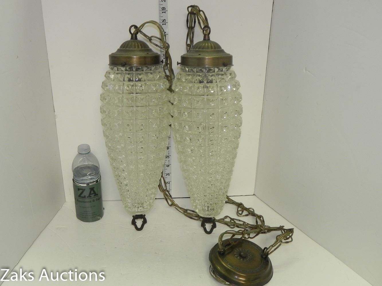 Mid Century Diamond Pattern Double Hanging Pendant Swag Light (working) Comes from an estate