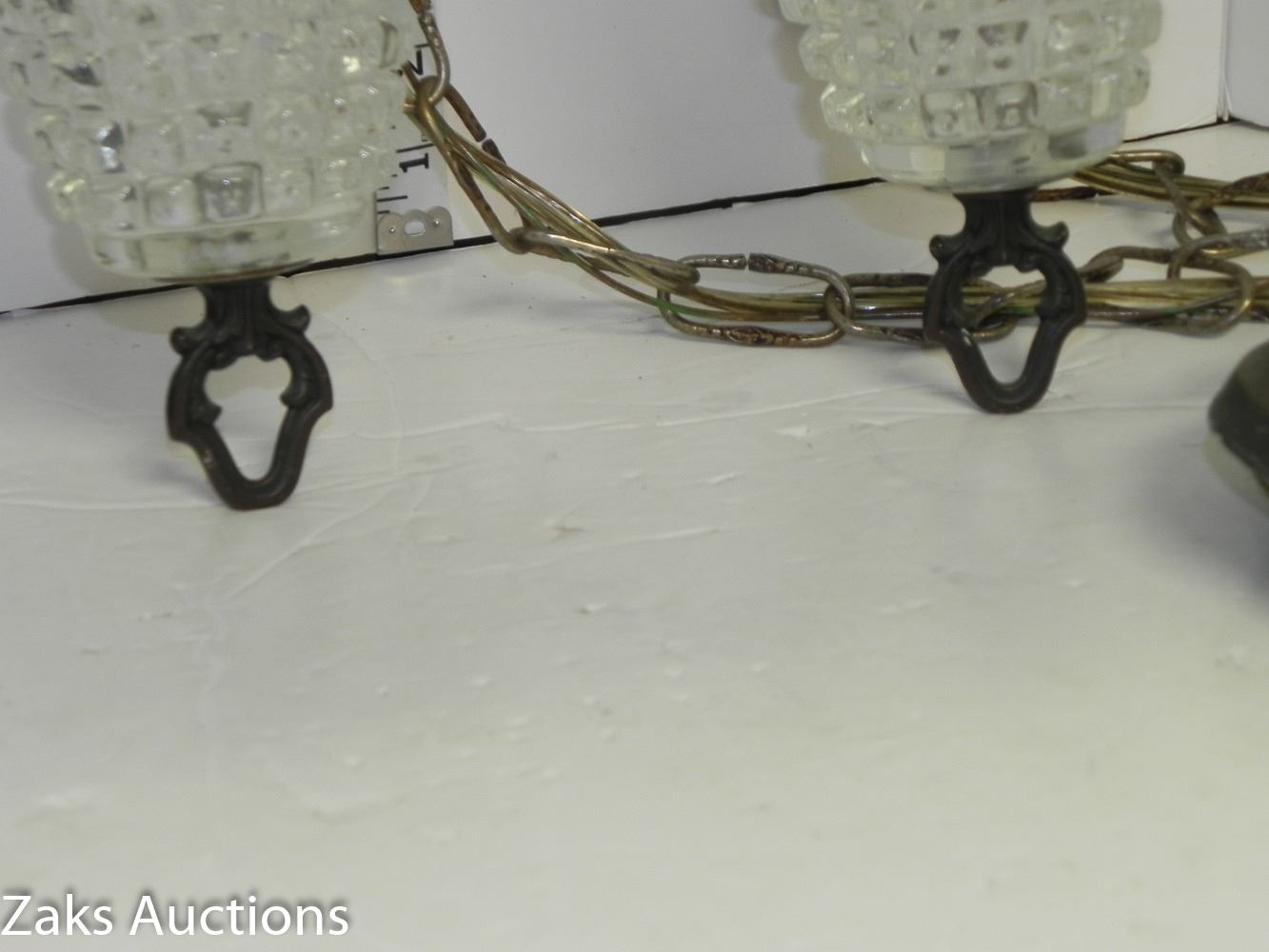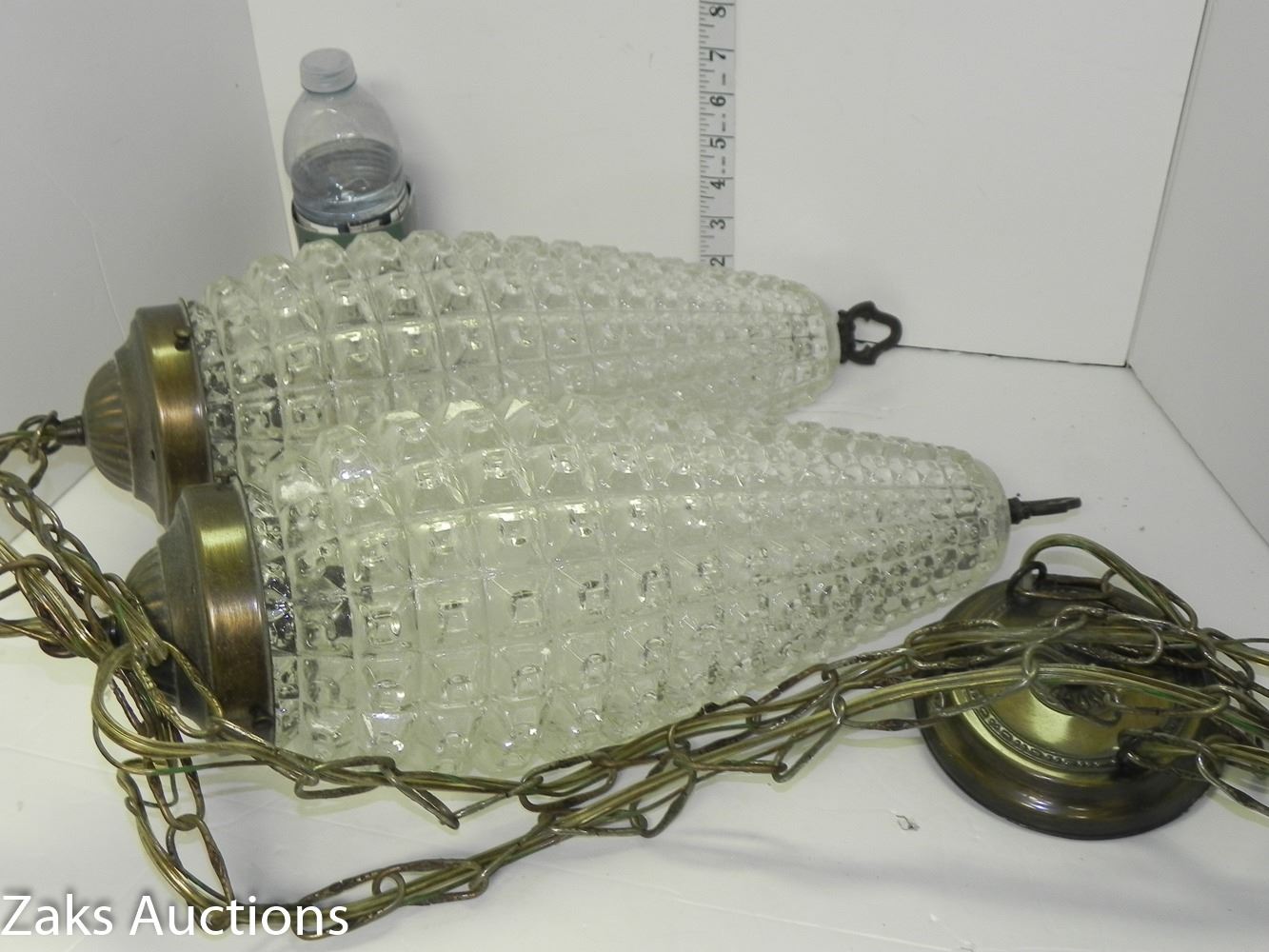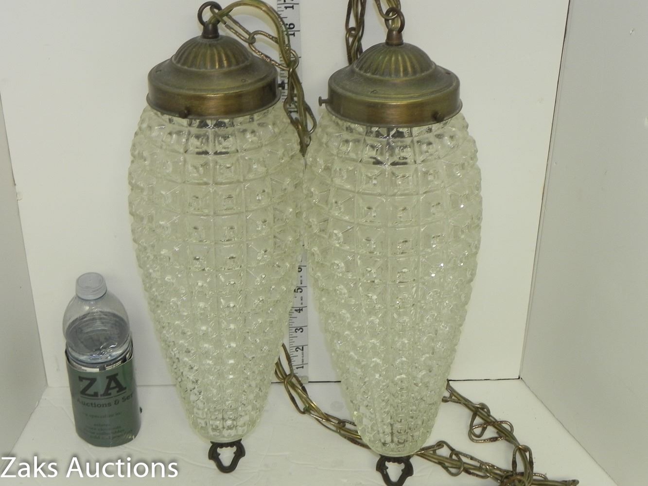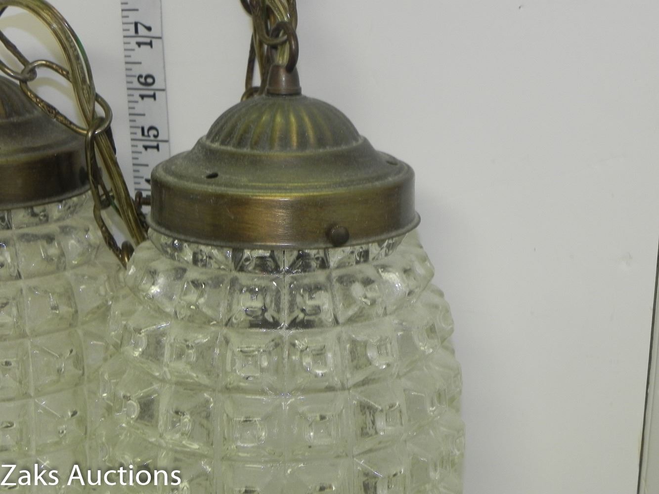 Mid Century Diamond Pattern Double Hanging Pendant Swag Light (working) Comes from an estate