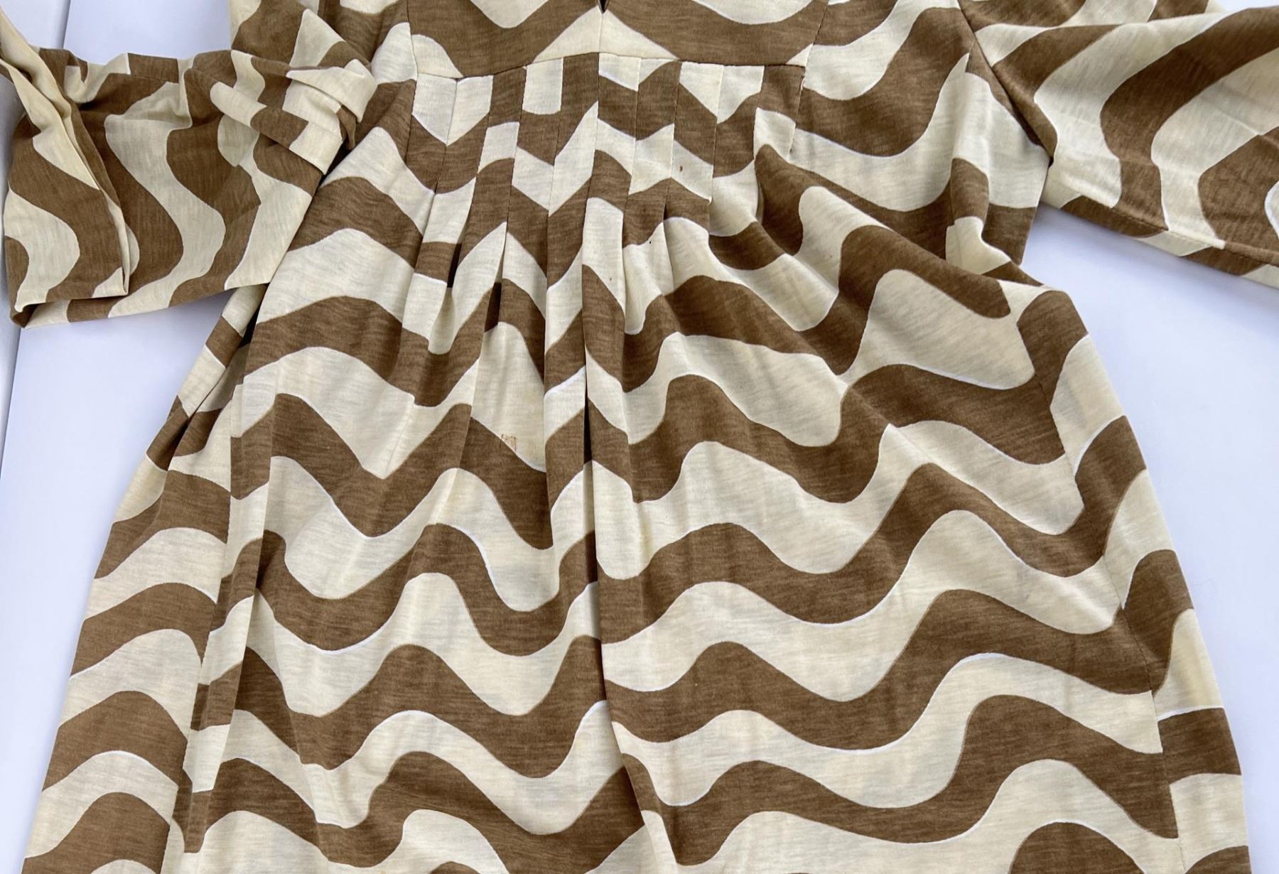 Measurements as shown. Nicotine damaged, should be dry cleaned.