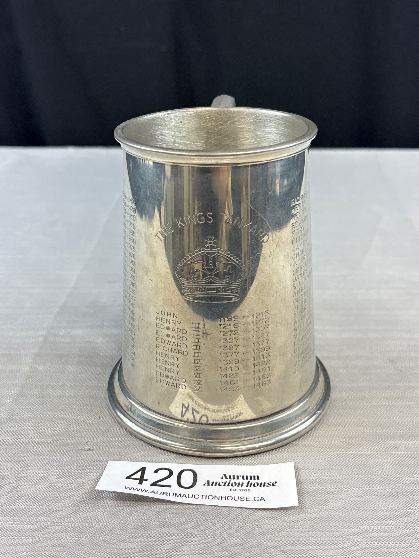 Mid-Century English Pewter 1 Pint 'The Kings Tankard'