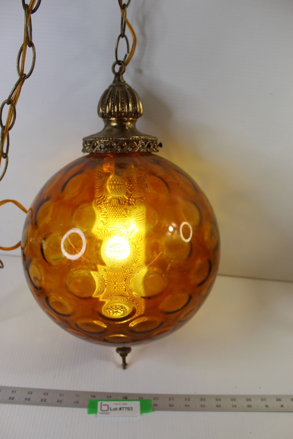 Mid-Century Hanging Amber Glass Swag Light - Plug-In - Works (12" Shade Size, 20" Light Fixture Length)