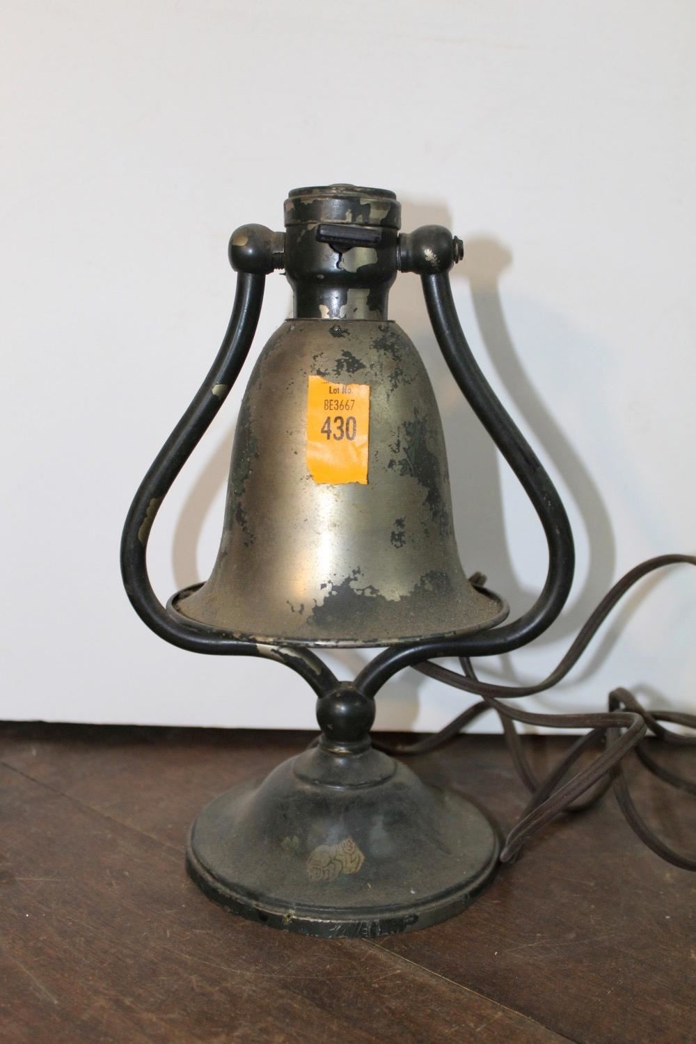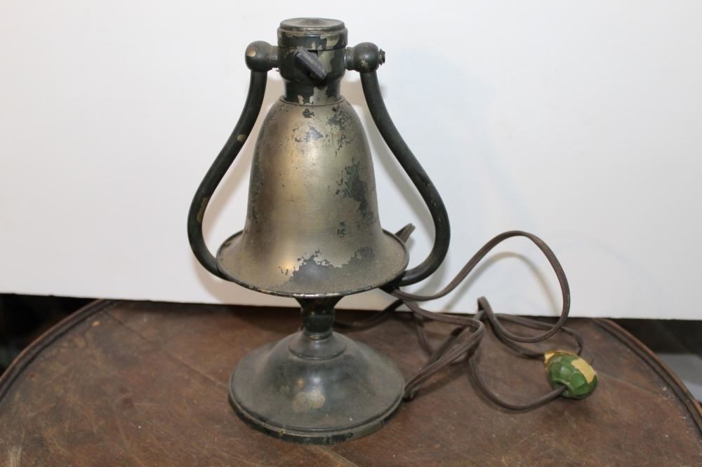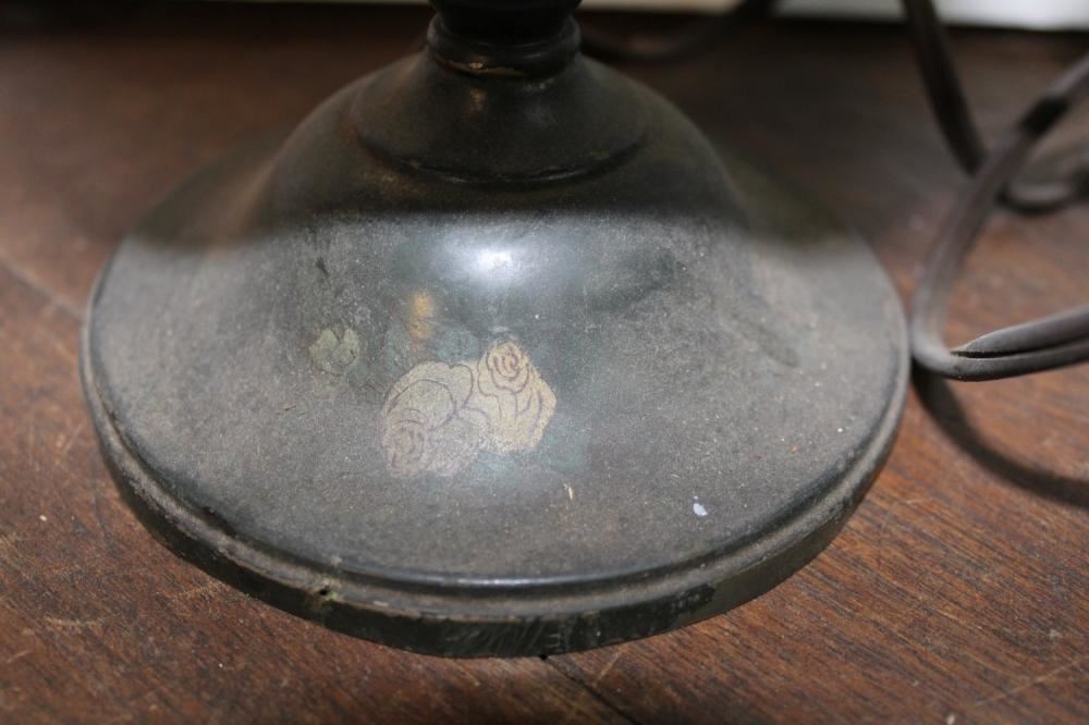 Bryant Mid Century harp desk lamp with small rose designs on base. Approx. 9.5 inches tall x 6.5 inches wide.