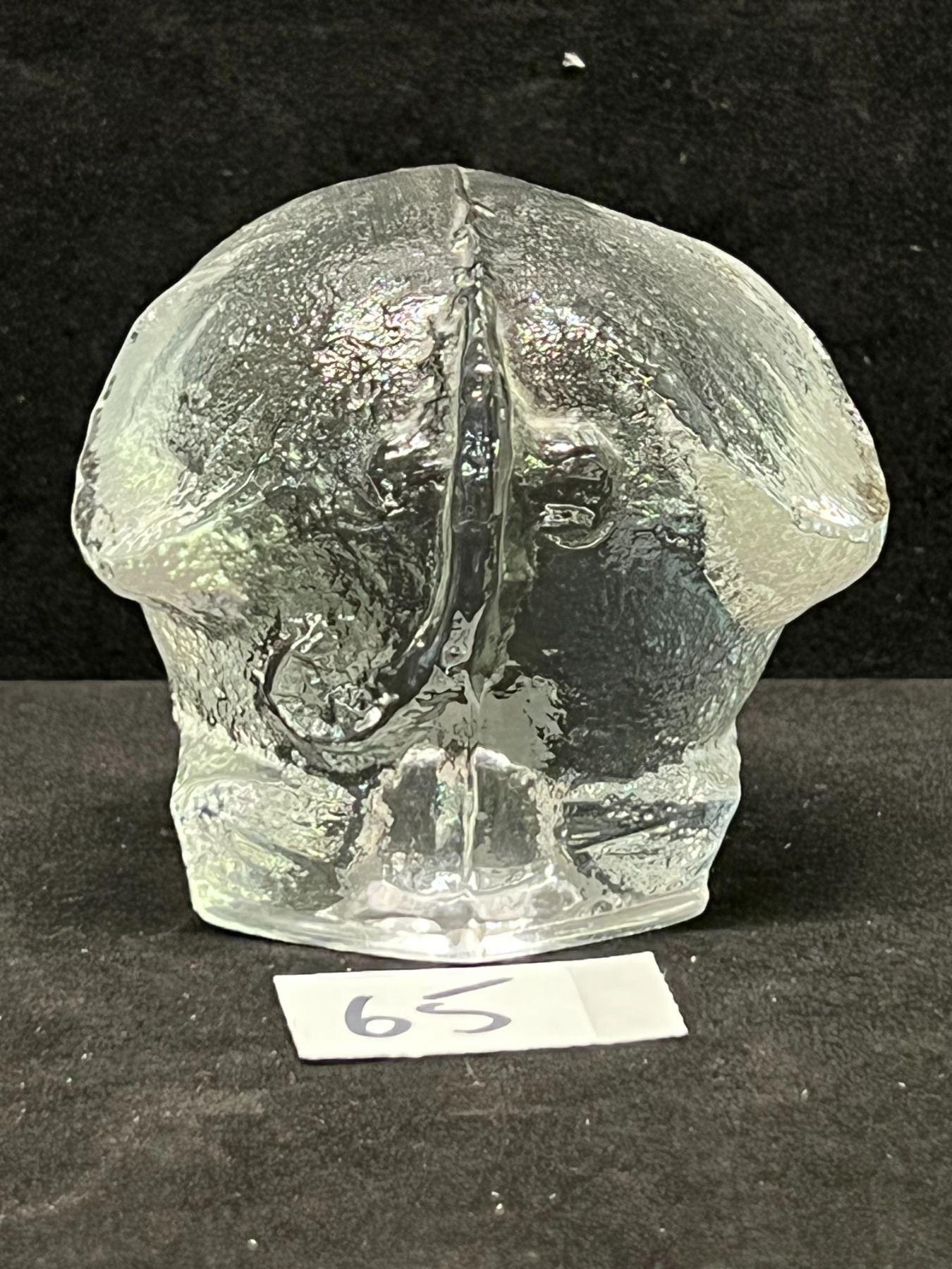 Mid Century Heavy Textured Glass Elephant Paperweight Approx: 2.75"T & 3"W