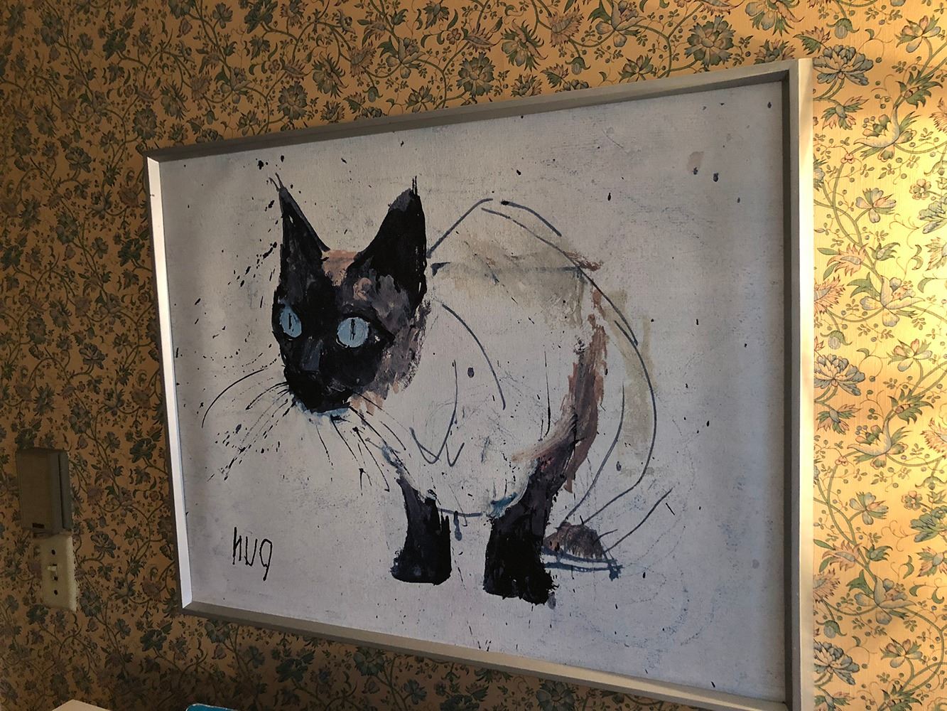 Mid Century Siamese cat print on canvas, Fritz Rudolf hug, Switzerland. pd estate