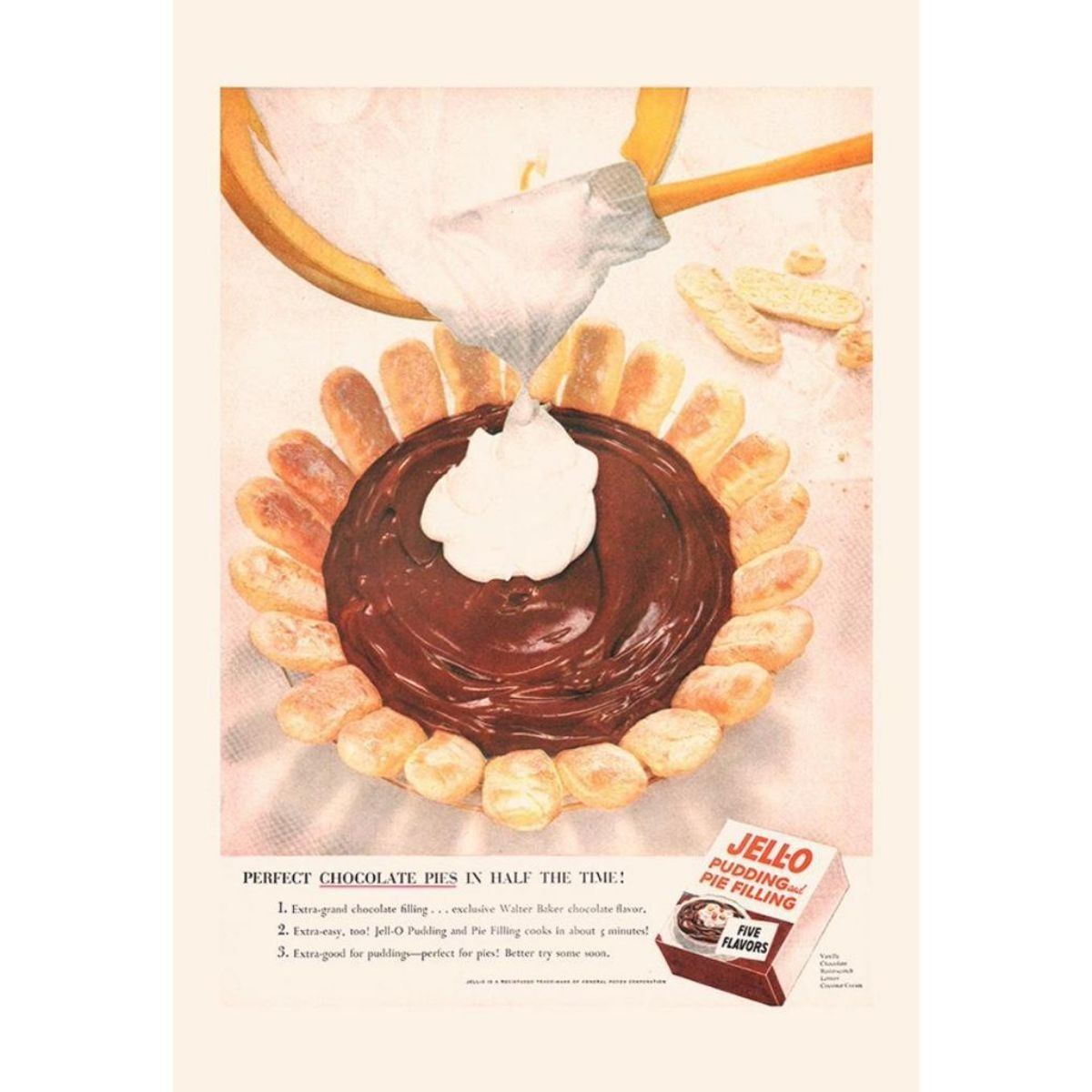 New giclee print, created from an original mid 1950's Jell-O chocolate pudding advertisement. 11" X 14". Ready for framing.Â